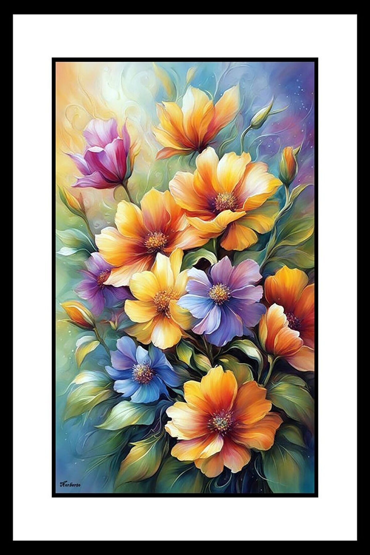 AKTÜEL POSTER Renkli Çiçek Bahçesi Digital Art ( ÇERÇEVESİZ - ÇERÇEVE YOKTUR ) ( ULTRA HD ) FOLYO AFİŞ - POSTER