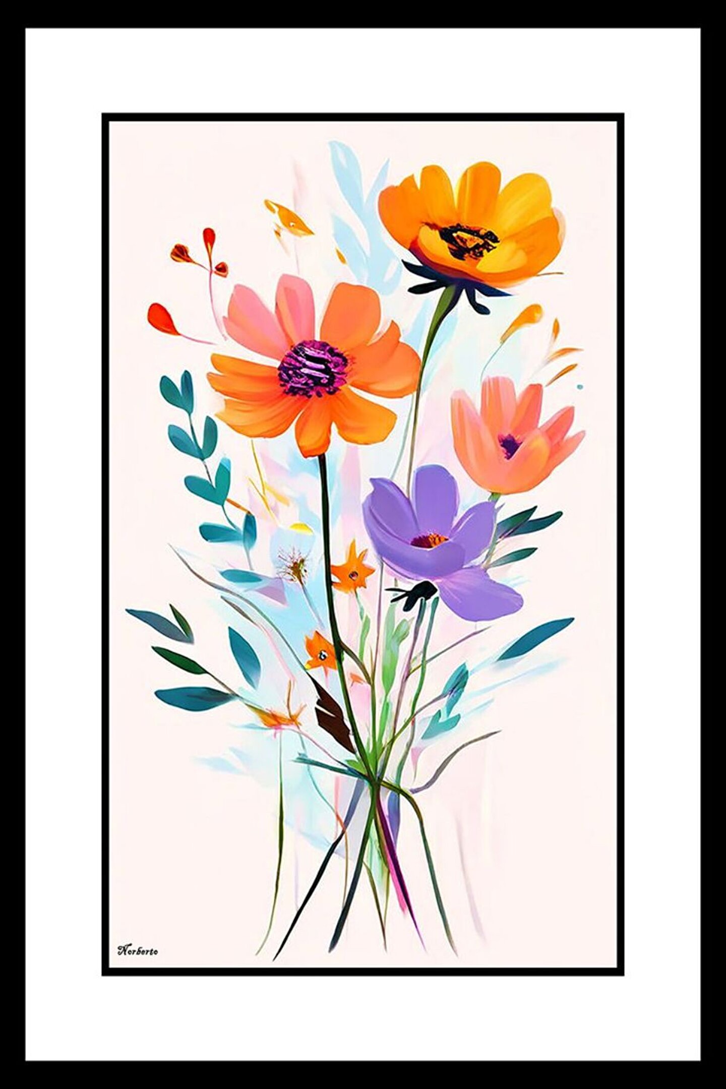 AKTÜEL POSTER Renkli Çiçek Demeti Digital Art ( ÇERÇEVESİZ - ÇERÇEVE YOKTUR ) ( ULTRA HD ) FOLYO AFİŞ - POSTER