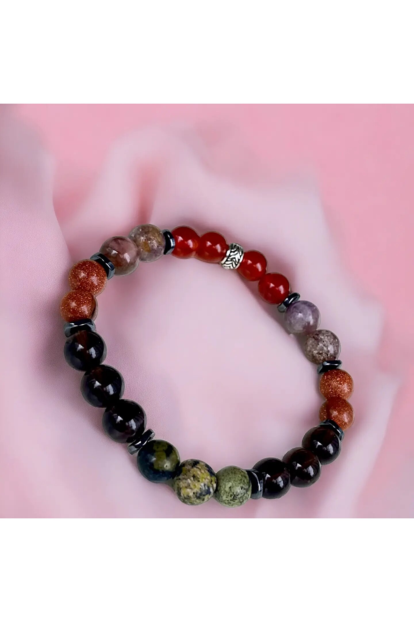 - Doğal taş kullanımı sayesinde, her bileklik benzersiz ve otantik bir görünüm sunar; - Anksiyete ve panik atak gibi durumlarda rahatlık sağlayan özel tasarım, stresli anlarda bileğinizde bir destek kaynağı olur; - Doğal taşların şifalı özellikleriyle, hem estetik hem de terapötik faydalar sunar;