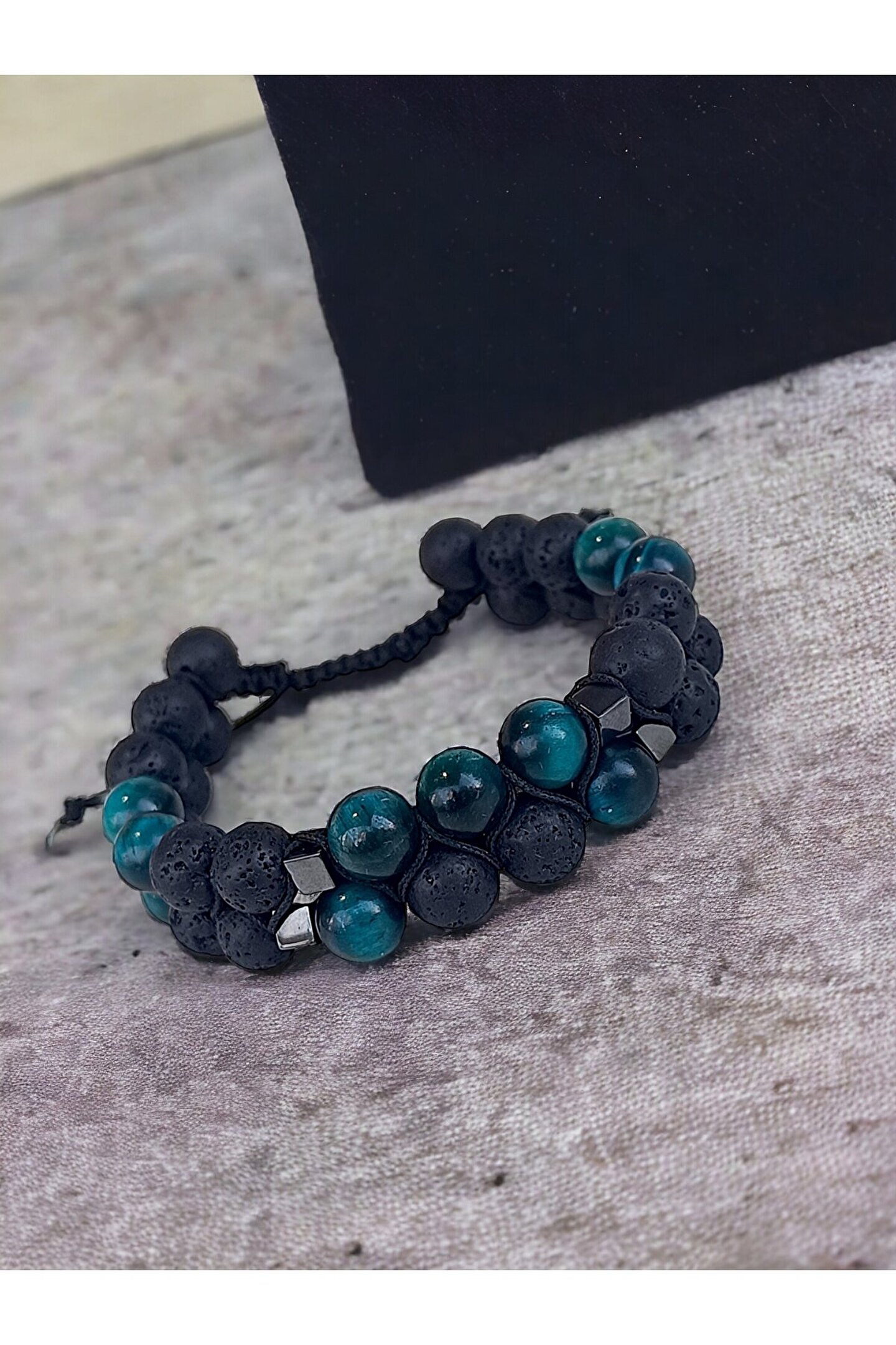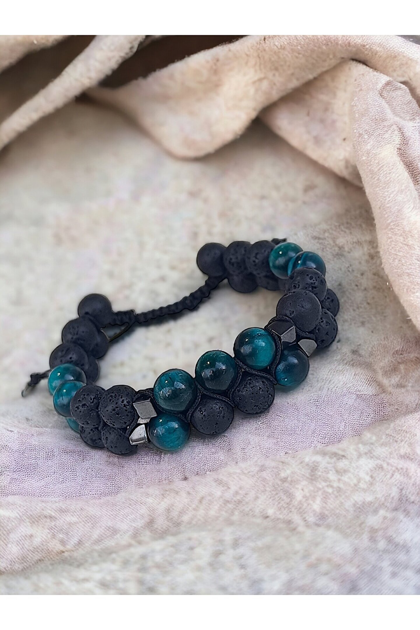 Doğal taşların eşsiz güzelliğiyle tasarlanan bu bileklik, şıklığınızı tamamlar ve doğal dokunuşuyla dikkat çeker.; Kaplangözü taşı ve lav taşı gibi değerli doğal taşlarla süslenmiş, her biri kendine özgü özellikleri olan bilezikler, doğanın enerjisini bileğinizde hissedin.; Özel tasarımıyla öne çıkan bu bileklik, hem günlük kullanımda hem de özel günlerde stilinizi tamamlayacak ideal bir aksesuardır.; Doğaltaş bilezik, doğayla bağlantınızı güçlendiren ve pozitif enerjiyi yanınızda taşımanız için mükemmel bir seçimdir.; Kaplangözü taşı ile lav taşının uyumlu renkleri ve dokusu, bileziğinizi benzersiz kılmakla kalmaz, aynı zamanda kişisel tarzınıza sofistike bir dokunuş ekler.;