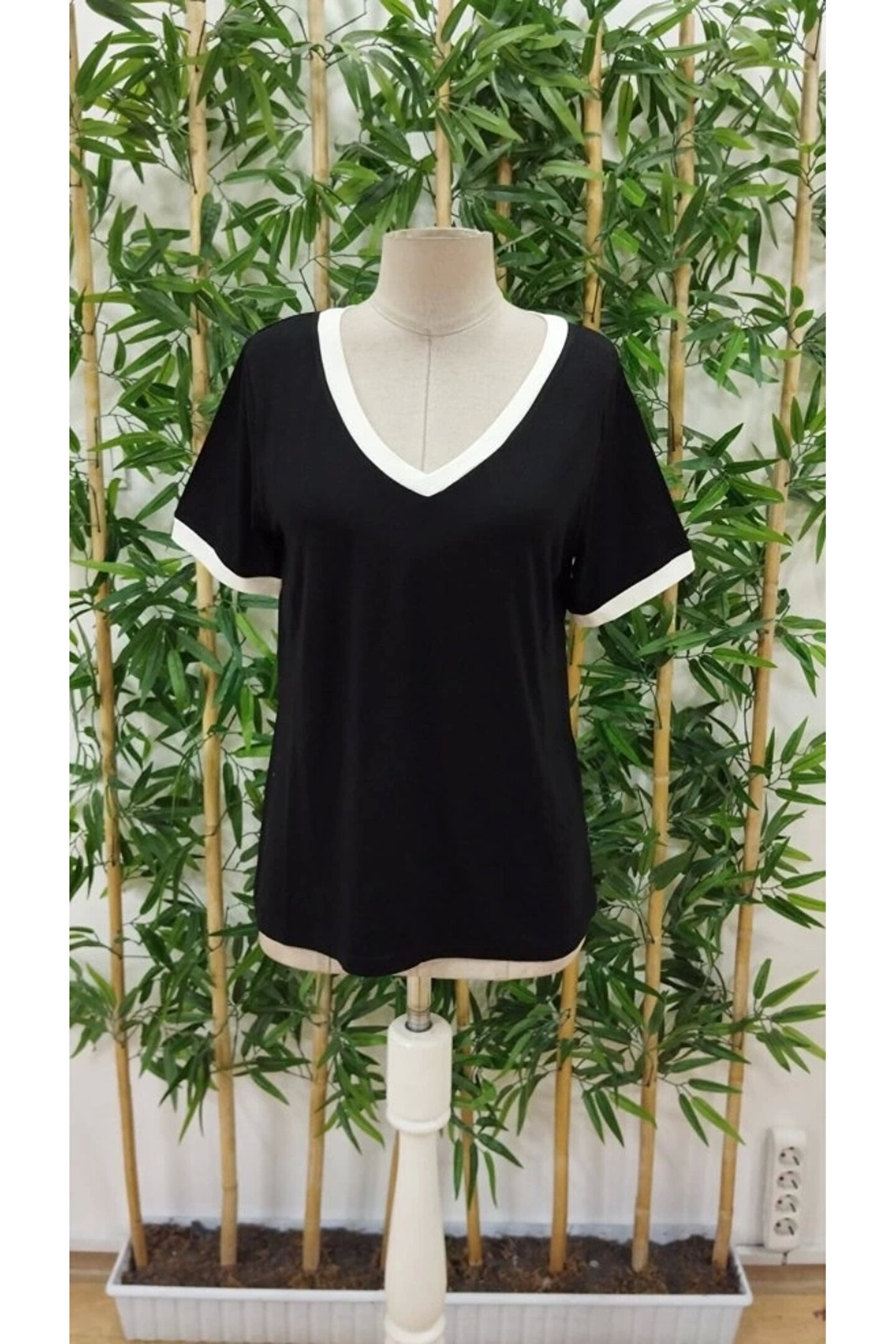 Kadın Kısa Kollu V Yakalı Viskon Bluz