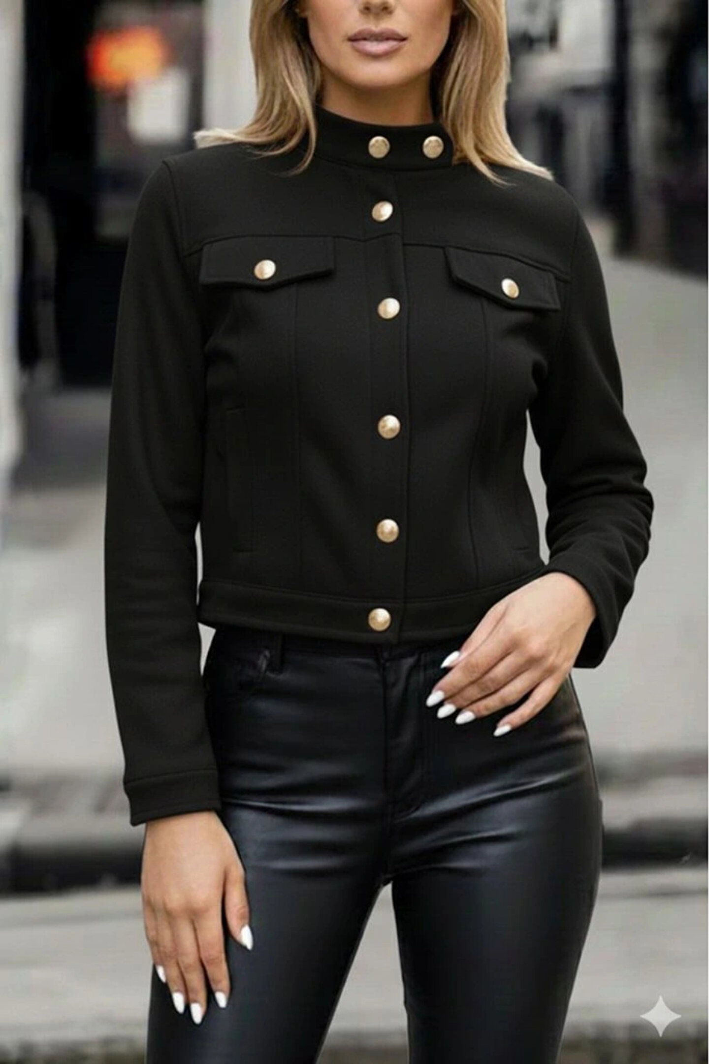 ALPACO Kadın Uzun Kollu Yakadan Ve önden Düğmeli Süet Kısa Ceket
