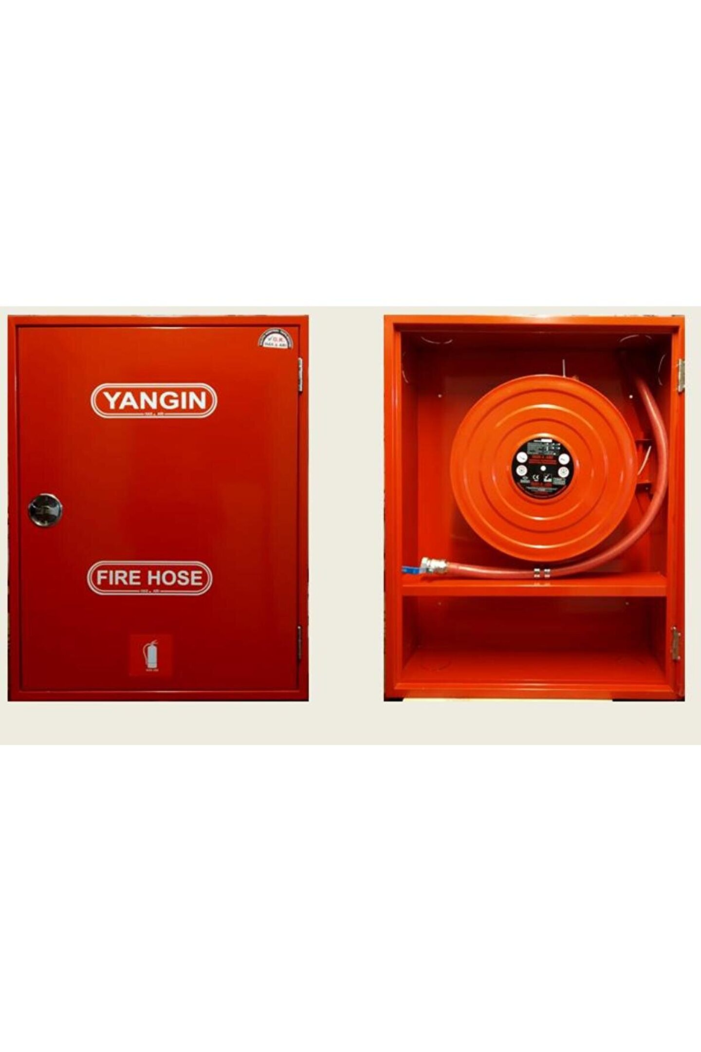 1" Dik Kapaklı Saç Kapak 30 Mt Hortumlu 0.90 Mm Yangın Dolabı Tse' Li Sıva Altı Alperen