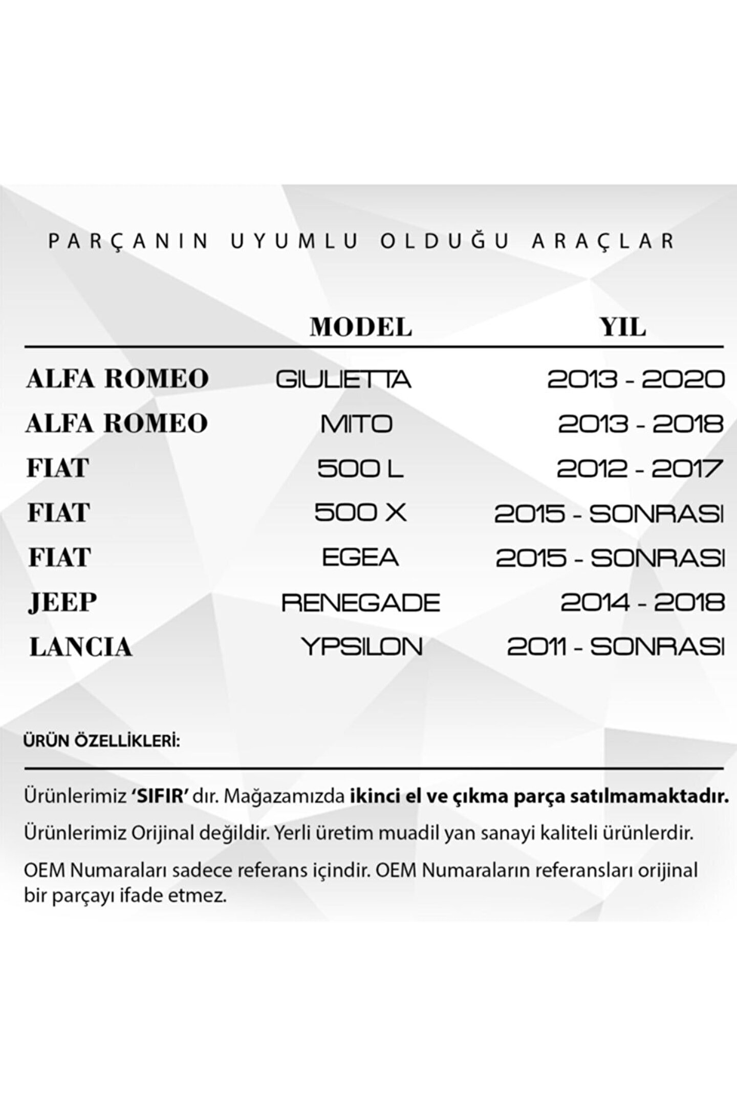 Fiat 500 ailesi araçlar için özel olarak tasarlanmış, aracınızın tavan anten çubuğu ile uyumlu ve estetik bir görünüm sağlar; Dayanıklı malzemeden üretilmiş olup, uzun ömürlü kullanım sunar; Kolay montaj imkanı sayesinde ekstra bir teknik bilgi gerektirmez ve hızlı bir şekilde monte edilebilir; Antenin yüksekliği, aracınızın tavan yapısına mükemmel uyum sağlayarak rüzgar direncini azaltır ve sürüş konforunu artırır;
