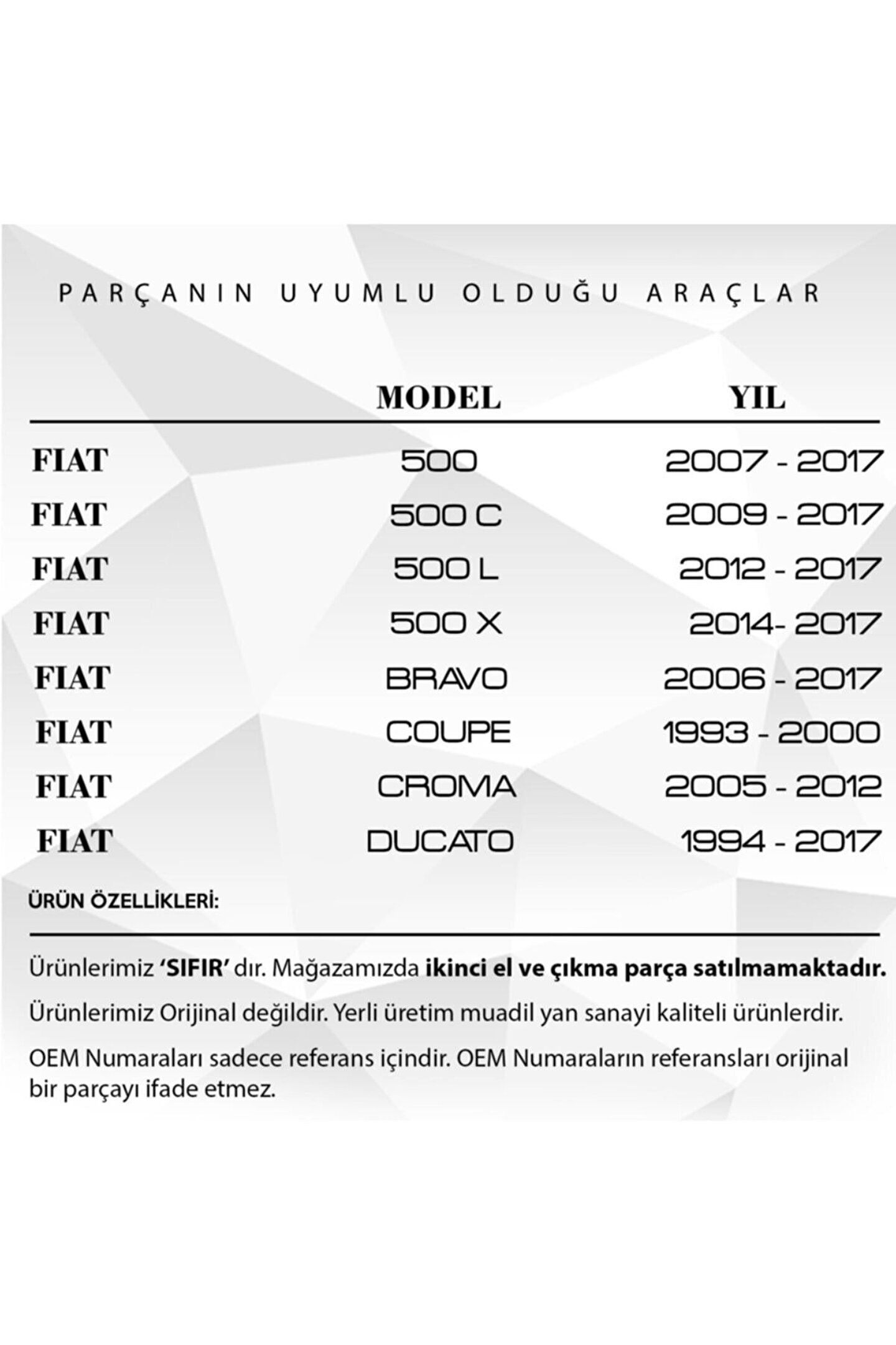 Fiat 500. Ducato.; Linea.; Punto.; Tipo için 3'lü Su Fıskiye Valfi.; WR2255 kodlu Araba 3'lü Su Fıskiye Valfi, aracınızın soğutma sistemine hayati bir katkı sağlar.; Araç performansınızı optimize ederken, motorunuzun ideal sıcaklıkta çalışmasını sağlar.; Bu 3'lü su fıskiye valfi, su ve antifriz karışımını motor bloğu ve radyatör arasında dolaştırarak, motorun aşırı ısınmasını önler.; Ayrıca, motoru soğutmak için gereken enerjiyi azaltarak yakıt verimliliğini artırır.; Dayanıklı ve sağlam bir yapıya sahip olan bu valf, uzun süreli ve güvenilir bir kullanım sunar.; Ayrıca, kolay montaj özelliği ile de kullanıcı dostudur.; Araba 3'lü Su Fıskiye Valfi, aracınızın performansını artırmak ve motorun ömrünü uzatmak için mükemmeldir.; Bu ürün, araç bakımı ve tamirinde kaliteyi ve rahatlığı tercih edenler için idealdir.