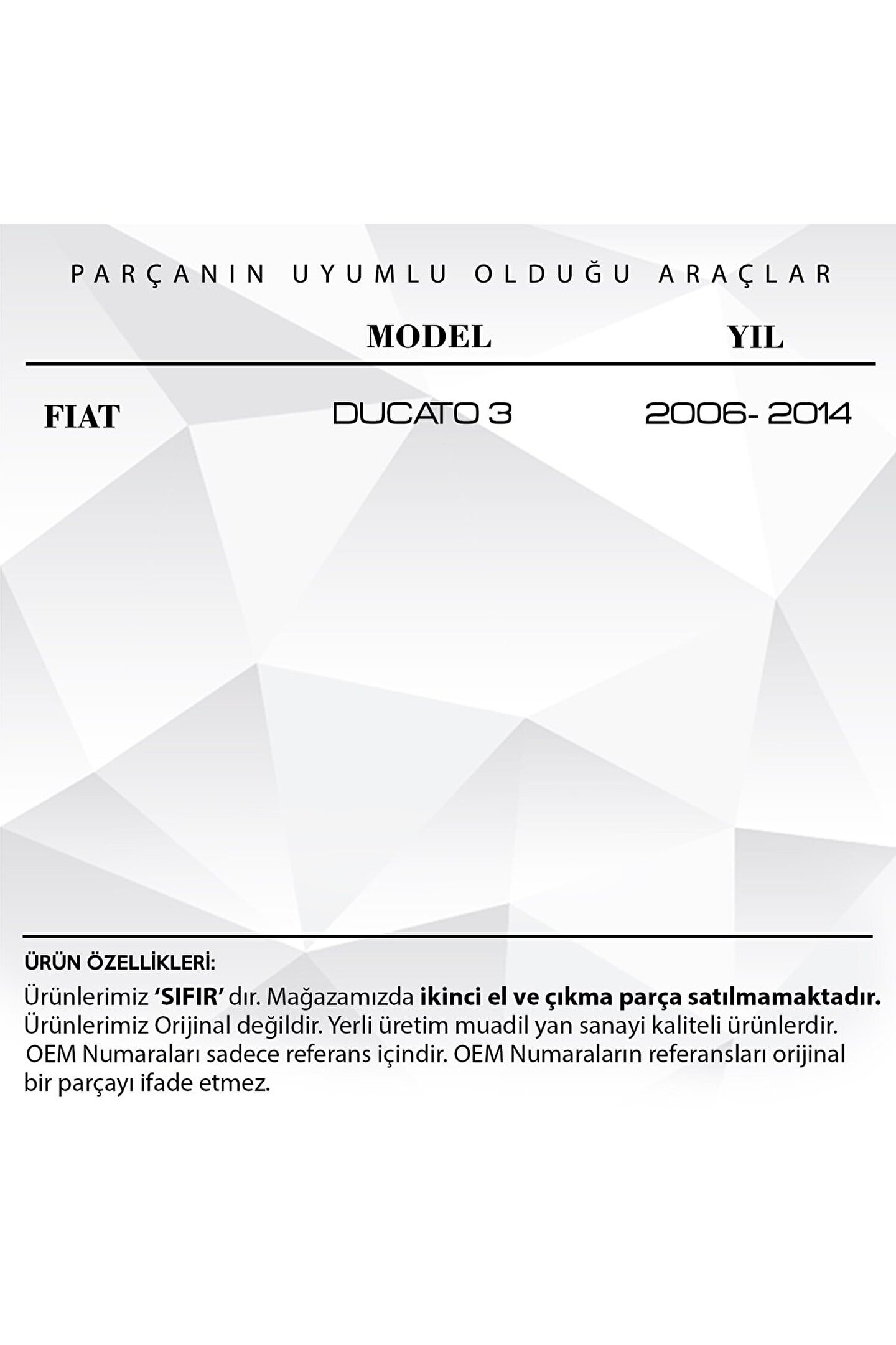Fiat Ducato 3 İçin İçten Açma Teli.; Bu araba, sürüş deneyiminizi en üst seviyeye çıkaracak son teknoloji özelliklerle donatılmıştır.; İç mekan tasarımı konforu ve kullanım kolaylığını ön planda tutarak, uzun yolculukları bile keyifli hale getirir.; Güçlü motoru ve yakıt verimliliği, hem performansı hem de ekonomiyi bir arada sunar.; Güvenlik özellikleri, sürücü ve yolcular için maksimum koruma sağlar.; Rahat koltukları, geniş iç mekanı ve kullanışlı bagaj alanı, tüm ihtiyaçlarınızı karşılar.; Modern ve şık tasarımı ile her yere uyum sağlar.; Bu araba, size her yolculukta kaliteli ve üstün bir sürüş deneyimi sunar.; Ürün Kodu: WR2315