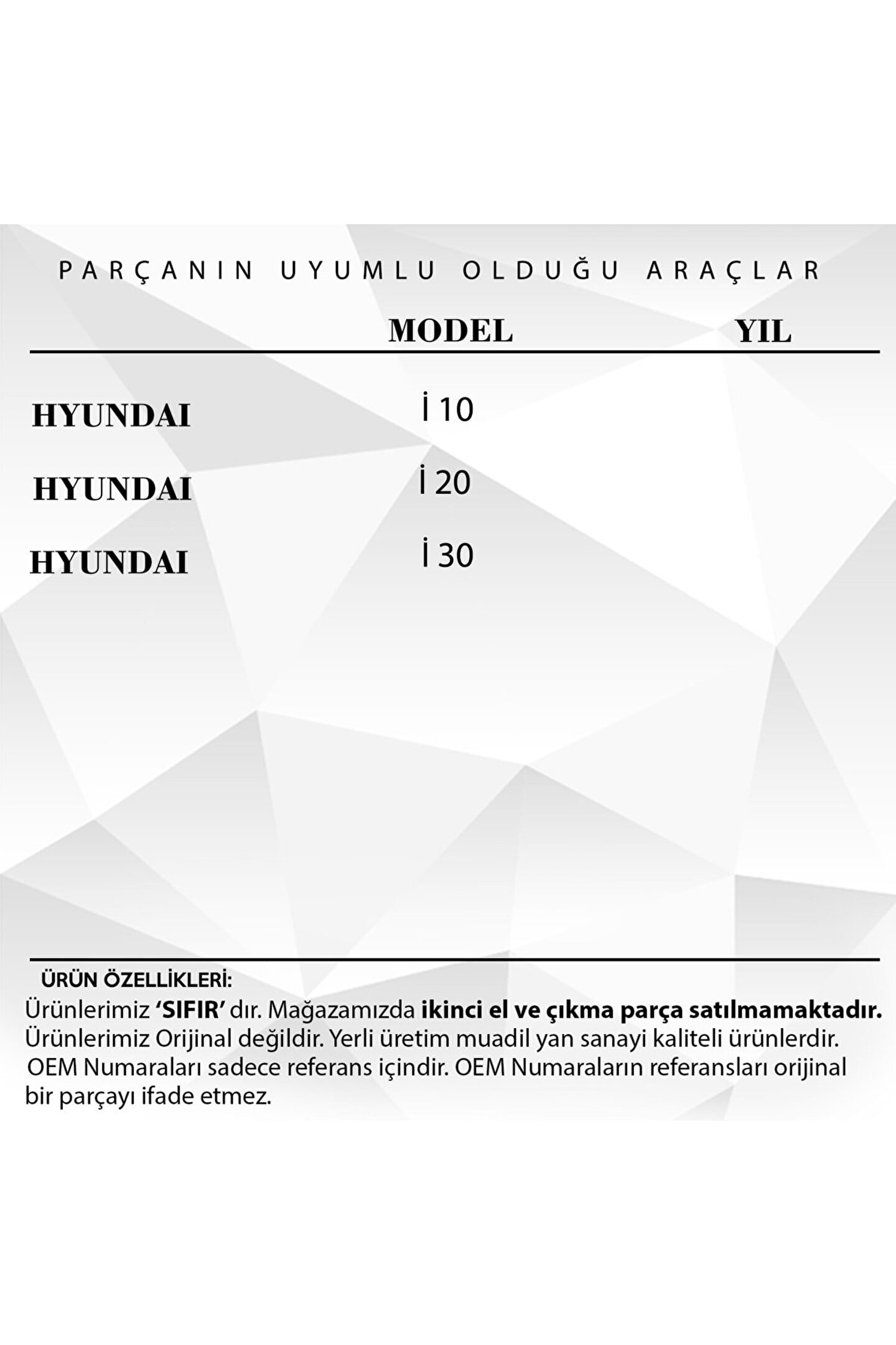 Kia.; Hyundai i30 i20 i10 İçin Yan Ayna Tamir Dişlisi- 30 Diş.; MR2284 kodlu Araba Yan Ayna Tamir Dişlisi- 30 Diş, aracınızın yan aynasının sorunsuz çalışması için ideal bir çözümdür.; Bu parça, aracınızın yan aynasının düzgün ve verimli hareket etmesini sağlar.; Üstün kaliteli malzemeden üretilmiştir, bu da ona yıllarca dayanıklılık ve güvenilirlik sağlar.; Yüksek kaliteli işçilik, bu dişlinin aracınıza mükemmel bir uyum sağlamasını ve en iyi performansı sunmasını sağlar.; 30 dişli yapısı, hassas hareket ve kontrol sağlar.; Araba Yan Ayna Tamir Dişlisi- 30 Diş, aracınızın yan aynasının ömrünü uzatır ve sürüş deneyiminizi güvenli ve konforlu hale getirir.; Bu yedek parça, yan aynanın tamirinde veya değiştirilmesinde mükemmel bir seçimdir.