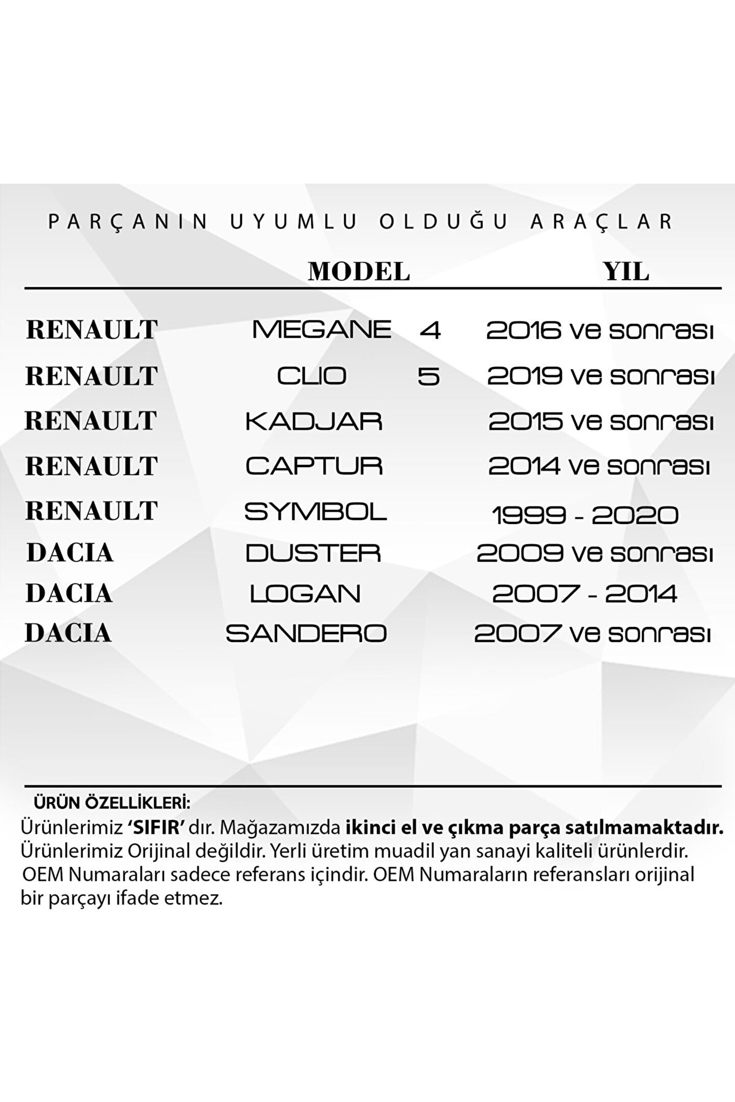 Renault Megane4.Clio5. Dacia Duster için Anahtar Buton Lastiği.; Araba Anahtar Buton Lastiği (KY2213), anahtarınızın butonlarını koruma ve kullanım ömrünü uzatma konusunda ideal bir çözüm sunar.; Bu lastik kapak, anahtarınızın butonlarını aşınma, çizilme ve hasardan korur.; Aynı zamanda, butonların yanlışlıkla basılmasını önlemeye yardımcı olur.; Üst düzey kalitede malzemeden üretilmiş olan bu ürün, dayanıklılık ve uzun ömürlülük sunar.; Kullanımı kolaydır, anahtarınızın butonlarına tam oturur ve sıkı bir kavrama sağlar.; Ayrıca, bu lastiği temizlemek de oldukça kolaydır.; Araba Anahtar Buton Lastiği (KY2213), anahtarınızı yeni gibi koruyarak, kullanım kolaylığı ve dayanıklılığı bir arada sunar.