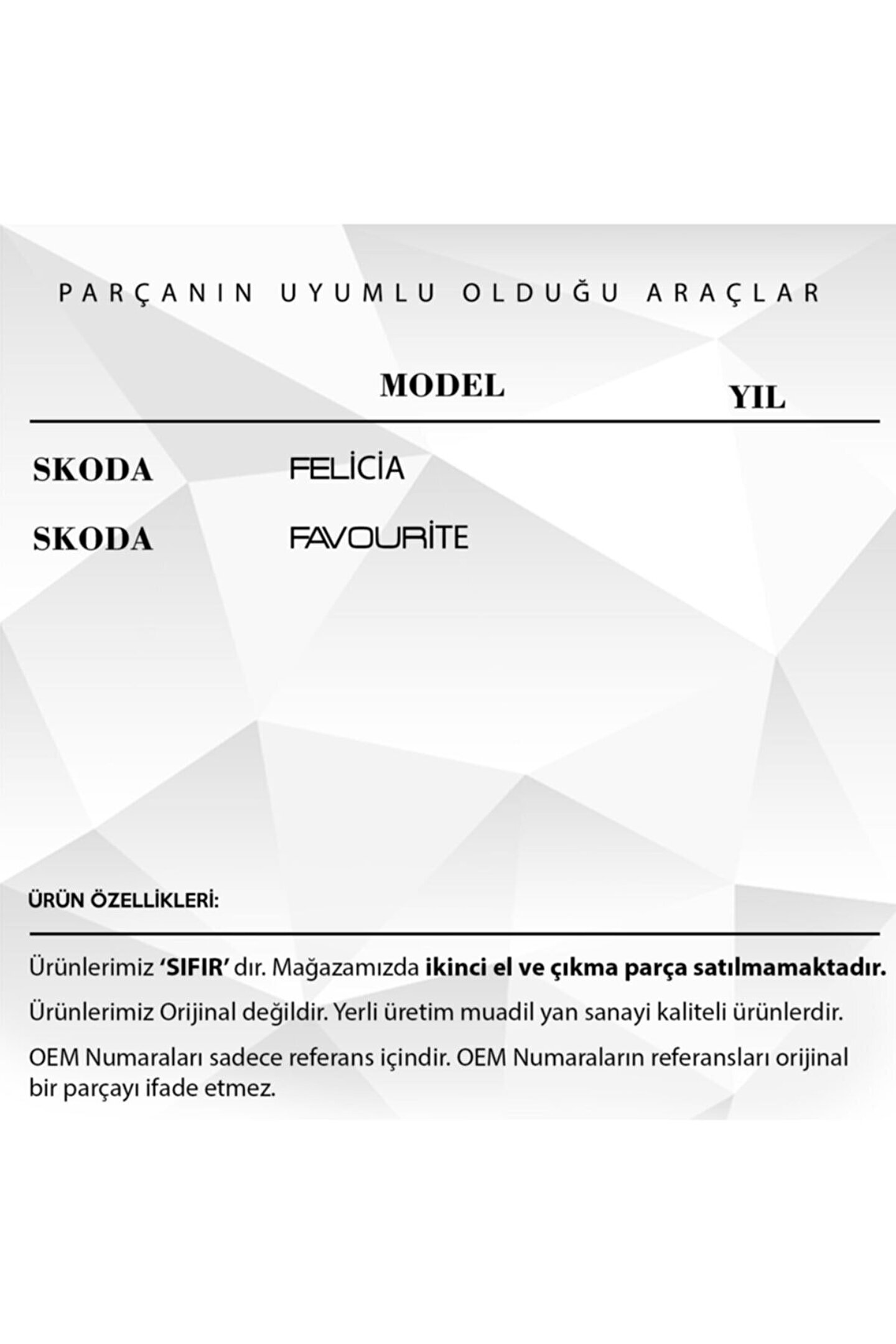 Skoda Felicia.; Favourite için Pedal Lastiği.; Ürün kodu PDL2223 olan araba pedal lastiği, özel olarak tasarlanmıştır ve üstün bir performans sağlar.; Kaliteli malzemeden yapılmış olup, dayanıklı ve uzun ömürlüdür.; Her türlü yol koşulunda mükemmel bir tutuş sağlar, böylece sürüş güvenliğinizi artırır.; Bu pedal lastiği, kullanımı kolaydır ve kolayca takılıp çıkarılabilir.; Ayrıca, her türlü araba modeli ve markasıyla uyumludur.; Araba pedal lastiği, ayaklarınızın kaymasını önler ve daha iyi bir kontrol sağlar.; Bu ürün, sürüş deneyiminizi bir üst seviyeye çıkarırken, aracınızın iç tasarımına da estetik bir dokunuş katar.; Yüksek performanslı bu araba pedal lastiği ile güvenli ve konforlu bir sürüş deneyimi yaşayın.