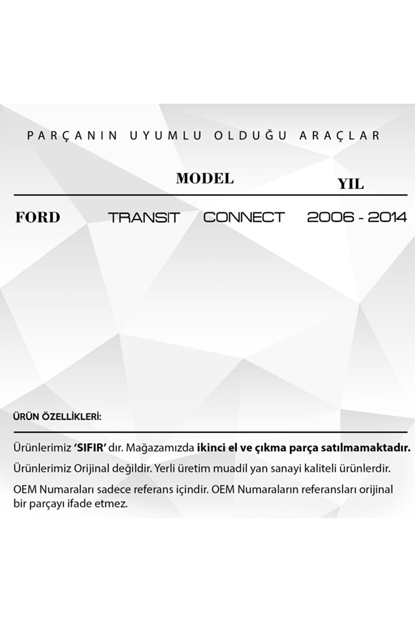 Ford Transit Connect için 3 Butonlu Anahtar Kumandası Kabı.; Araçlarınızın güvenliğini sağlayan Araba 3 Butonlu Anahtar Kumandası Kabı, dayanıklı yapısı ve pratik kullanımıyla dikkat çekiyor.; Ürün kodu KY2201 olan bu kumanda kabı, araba anahtarlarınızı çizilmelere ve hasarlara karşı koruyor.; Aynı zamanda 3 butonlu tasarımı, araç kumandanızın fonksiyonlarına kolay ve hızlı erişim sağlar.; Kolay taşınabilir yapısı ile cebinize veya çantanıza sığabilir.; Dayanıklı malzemesi sayesinde uzun ömürlü kullanım vaat eder.; Bu anahtar kumandası kabı, sadece araba anahtarınızı korumakla kalmaz, aynı zamanda şık ve profesyonel bir görünüm de katar.; Kullanımı kolay ve montajı basit olan bu ürün, araç sahipleri için ideal bir seçimdir.; Araba 3 Butonlu Anahtar Kumandası Kabı ile anahtarlarınız her zaman güvende ve kontrolünüz altında olacak.