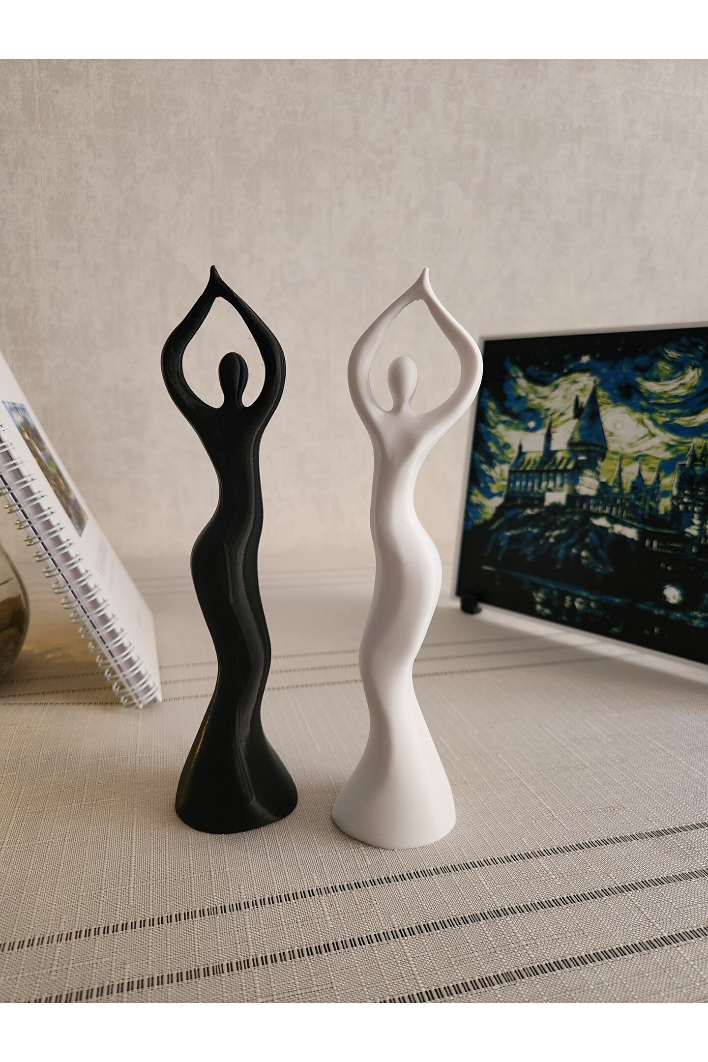 ÜRÜN 2 ADET OLARAK GÖNDERİLMEKTEDİR İskandinav tarzının zarif çizgilerini yansıtan dans eden kadın heykeli, evinizin dekorasyonuna modern bir dokunuş katıyor.; - İki parçadan oluşan set, hem tek başına hem de kombin olarak kullanılabilir böylece farklı alanlarda estetik uyumu sağlar.; - Yüksek kaliteli plastik materyalden üretilmiş olup, dayanıklılığı ve uzun ömürlü kullanımı garanti eder.; - 15 cm yüksekliğinde ve 7 cm genişliğindeki bu figür, mekanınıza şık bir görünüm kazandırırken aynı zamanda fonksiyonel bir aksesuar görevi görür.; - Beyaz rengiyle her türlü iç mekan tasarımına kolayca uyum sağlayarak, evinizdeki renk paletine zarif bir kontrast oluşturur