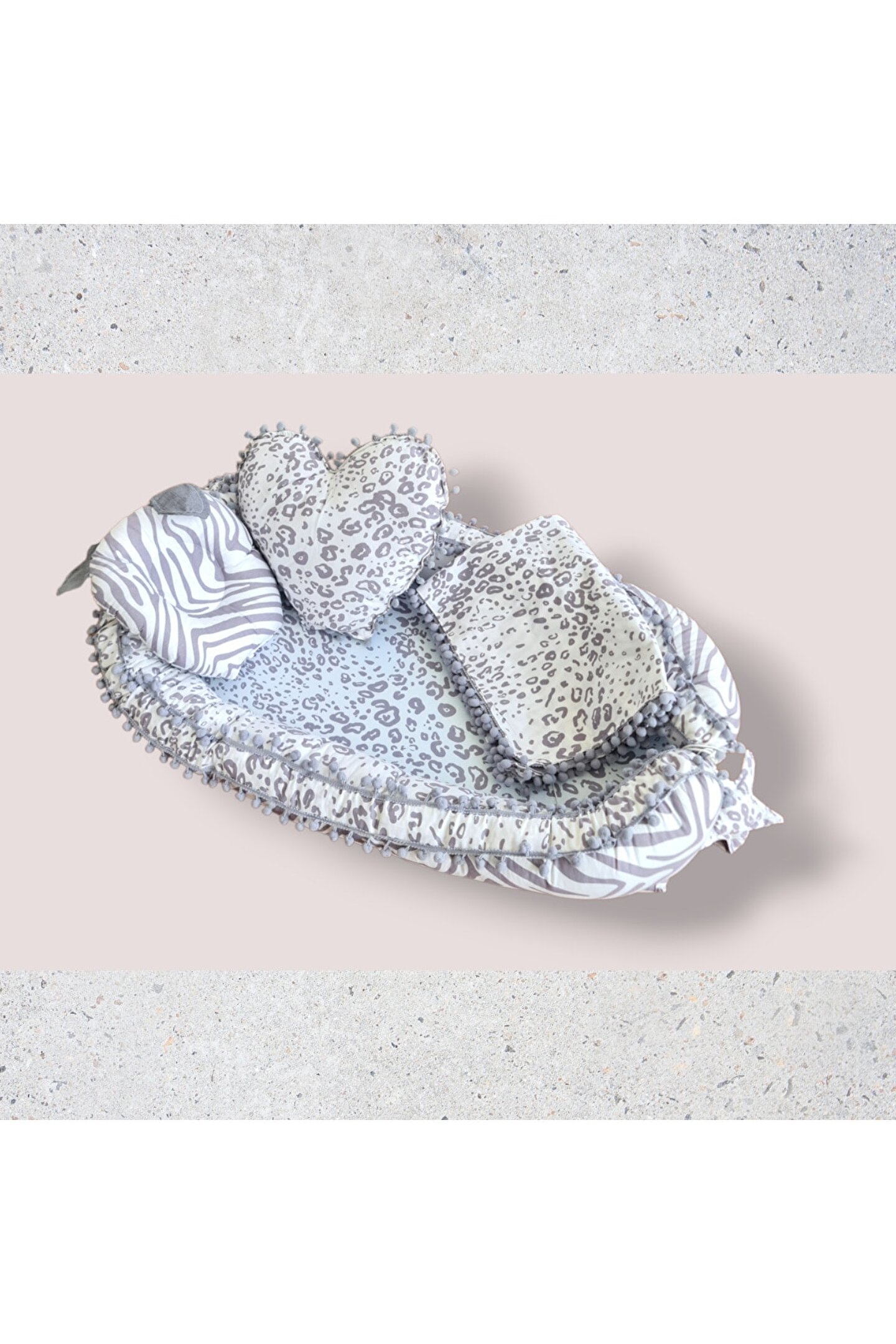 Kırmızı pomponlu Babynest Yatak ve baş yastığı %100 pamuklu kumaştan üretilmiştir, Kenarları ezilmez ve toplanmaz silikonlu 1. ; sınıf boncuk elyafla doldurulmuştur. ; Ortopedik kulaklı yastık düz kafa yastığı Uç kısmında bulunan yıldızlı ipler ile ürün boyu istediğiniz genişlikte ayarlanabilir. ; Bir buçuk yaşına kadar kullanılabilir. ; Dıştan dışa 100x65 cm dir. ; İç ölçüleri 75x35 cm dir. ; Bebeklerinizi, gittiğiniz her yerde rahatlıkla kendi temiz ortamında ki gibi uyutabileceksiniz. ; Pike battaniye 80 x 80 cm % 100 pamuklu kumaştan üretilmiştir terleme ve koku yapmaz, Paket içerisin de babynest, düz kafa yastığı, dekoratif kalp yastık ve pike bulunmaktadır. ; Yerli üretimdir...;