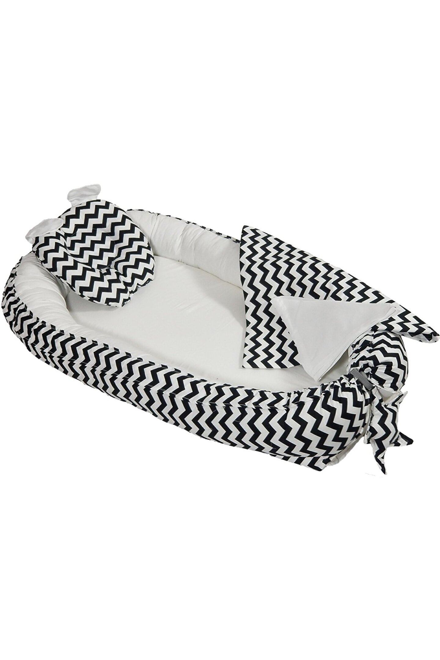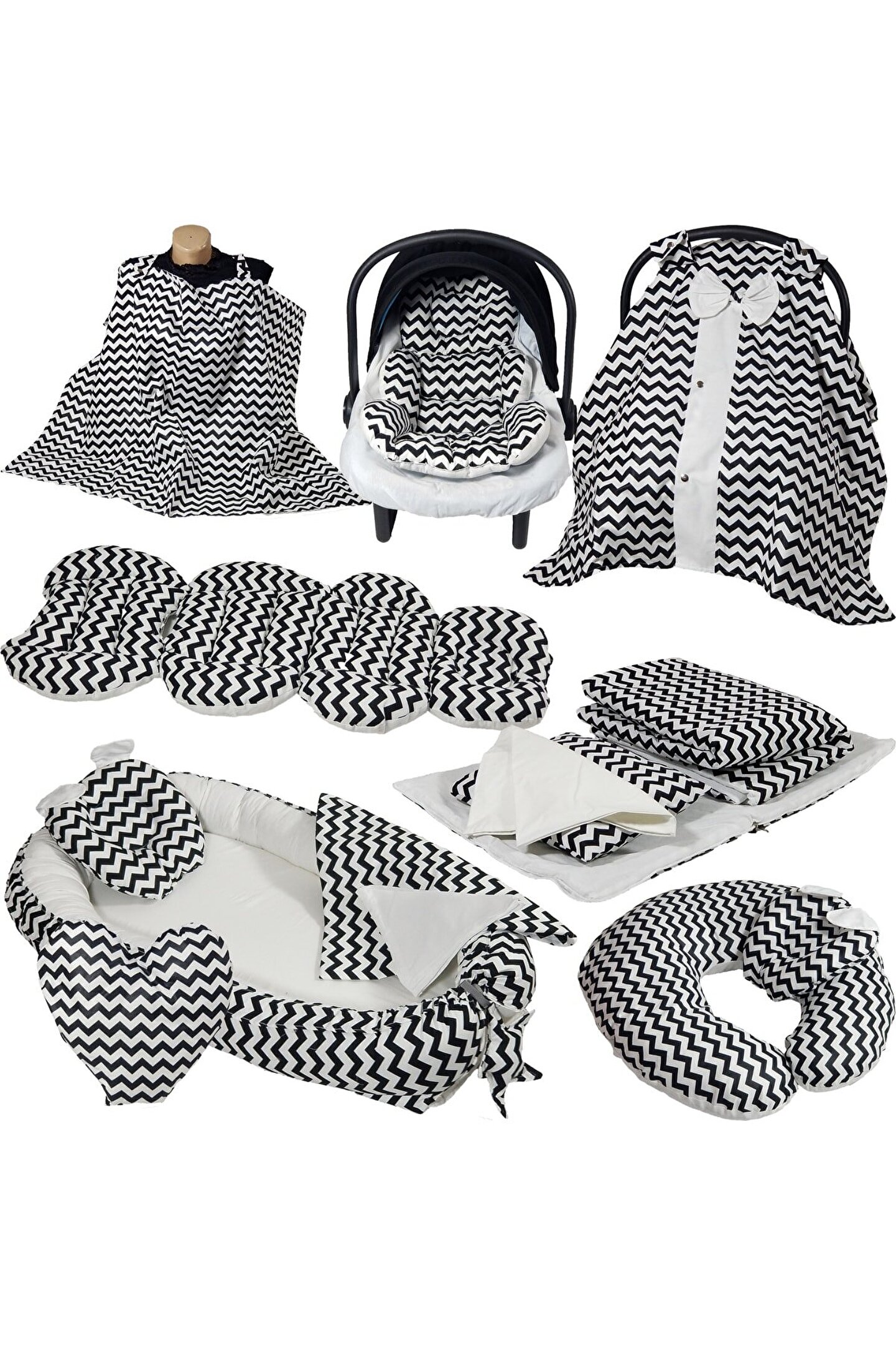 10'lu yeni doğan setimiz %100 pamuklu kumaştan üretilmiştir, Kenarları ezilmez ve toplanmaz silikonlu 1. sınıf boncuk elyafla doldurulmuştur. Ortopedik kulaklı yastık düz kafa yastığı, Uç kısmında bulunan yıldızlı ipler ile ürün boyu istediğiniz genişlikte ayarlanabilir. Bir buçuk yaşına kadar kullanılabilir. Dıştan dışa 100x65 cm dir. İç ölçüleri 75x35 cm dir. Bebeklerinizi, gittiğiniz her yerde rahatlıkla kendi temiz ortamında gibi uyutabileceksiniz. Pike battaniye 80 x 80 cm % 100 pamuklu kumaştan üretilmiştir terleme ve koku yapmaz. Paket içerisin de; düz kafa yastığı ve pike bulunmaktadır. Paket içerisin de; Babynest, Düz kafa yastığı, pike Puset örtüsü, puset çarşafı, puset minderi, Çocuk araba minderi (araç içi koltuk minderi olarakta kullanılmaktadır), Emzirme örtüsü olarak gönderim yapılmaktadır. Emzirme önlüğü 75*115 cm dir, boyun askısı çıt çıtlıdır ve 3 kademelidir kendi bedeninize göre ayarlayabilirsiniz. Tüm pusetler için uygun ölçüde tasarlandığından gönül rahatlığı ile tercih edilebilir. Bebeğinizi güneşten rüzgardan tozdan korur. Yerli üretimdir...