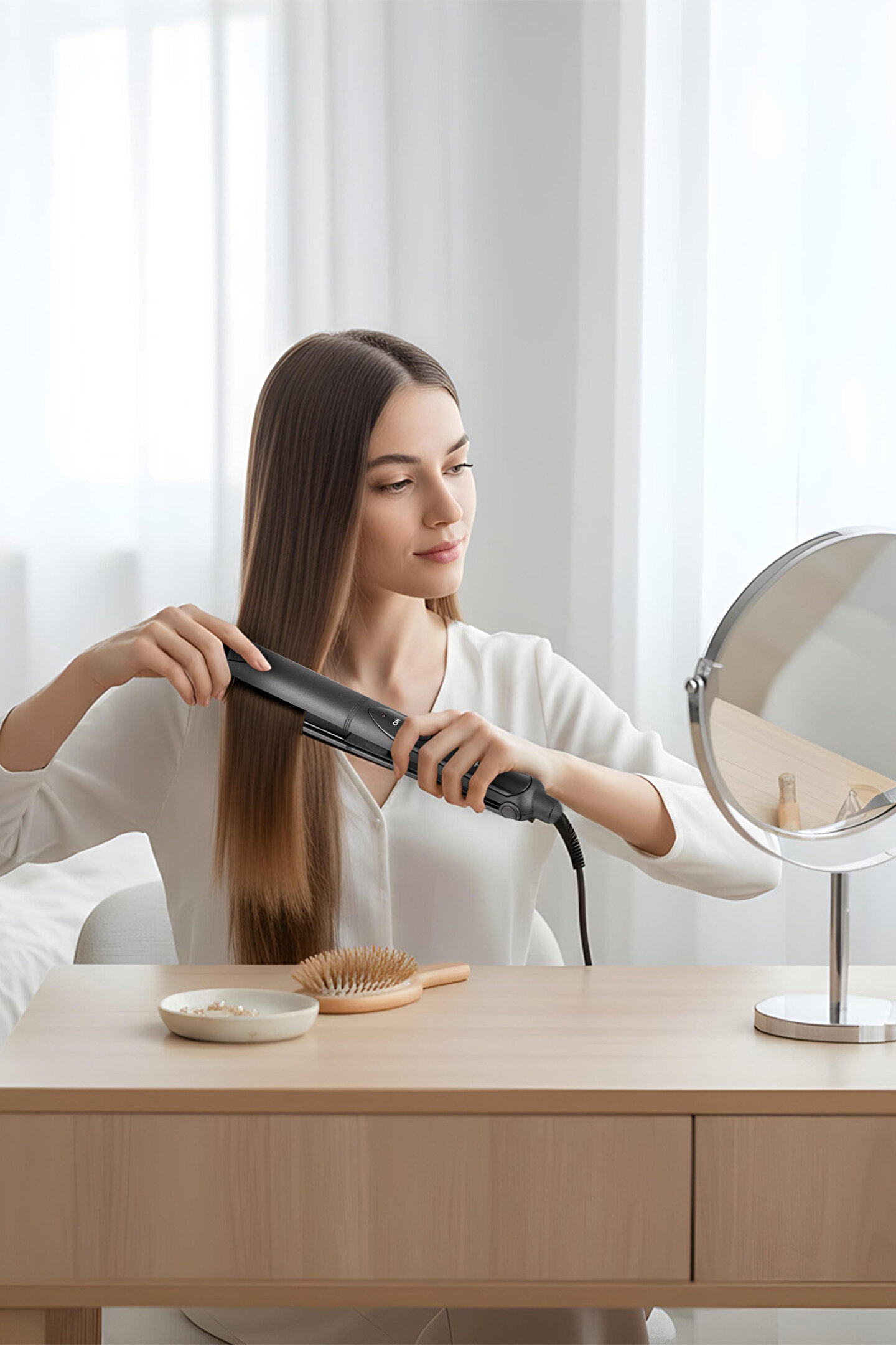 Aprilla saç düzleştirici 230 derecelik maksimum derecesi ile hızlı ve pratik kullanım olanağı sunar. Yüksek ısı durumunda güç göstergesi ışığı ile farkındalık yaratır. ; Aprilla AHS 2013 saç düzleştirici 45W gücü ile uzun ömürlü bir cihaz haline gelir. Kaliteli cihaz dayanıklılık gösterme performansı sayesinde hem kendini hem de saç yapısını korumayı başarır. ; Aprilla AHS 2013 üzerinde yer alan On/Off tuşları aletin açılıp kapanmasına yardımcı olur. ; Cihazın uç kısmında yer alan asma aparatı kolay kullanım sağlar. Depolama yönünden avantaj sağlayarak sabitlenebilir. ; Seramik plakadan üretilen alet ısıyı içine hapsederek yalnızca saç bölgesine çalışır. Sıcaklığı dışarıya yaymadan kullanılabilir.;