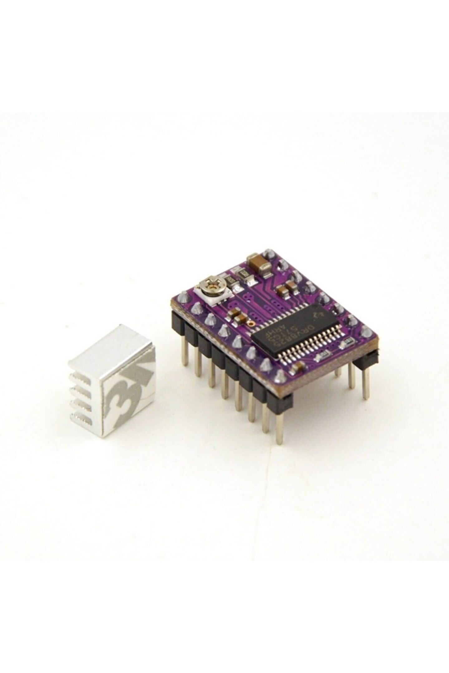 DRV8825 Step Motor Sürücü Kartı TI üretimi DRV8825 motor kontrol çiplerine dayalı bir microstepping step motor kontrol kartıdır. Kartın pin dizilimi A4988 step motor sürücü kartları ile hemen hemen aynıdır. Bu nedenle daha yüksek performans isteyen uygulamalarda A4988 yerine kullanılabilir. DRV8825 Step Motor Sürücü Kartı üzerindeki ayarlanabilir akım kontrolü sayesinde kart üzerindeki potansiyometre ile maksimum akımı ayarlayabilir ve motorun nominal voltajından daha yüksek voltajlar uygulayarak step hızını arttırabilirsiniz. ÖZELLİKLER: DRV8825 step motor sürücü kartı, kanal başına soğutmasız 1.5A akım verebilmektedir. ; Zorlanma ve ani durumlarda bu değer soğutma ile maksimum 2.2A"e kadar çıkabilmektedir. ; Sürücü ayarlanabilir akım sınırlaması, aşırı akım ve aşırı sıcaklık koruması ve altı mikrostep çözünürlük(1/32 Step) özelliklerine sahiptir. ; 8.2V ve 45V arasında geniş bir çalışma voltaj aralığı ile bir çok projede rahatlıkla kullanılabilinmektedir. ; TEKNİK ÖZELLİKLER: Basit step ve yön arayüzleri ; 6 farklı step çözünürlüğü; full-step,half-step,1/4-step,1/8-step,1/16-step ve 1/32-step ; Ayarlanabilir akım kontrolü (Yavaş veya hızlı akım azaltma) ; Minimum Motor Gerilimi:8,2V ; Maksimum Motor Gerilimi:45V ; Kısa devre koruması ; A4988 motor sürücü pin arayüzü ile aynıdır. ; Hem 3,3V, hem 5V sistemlerle uyumlu çalışabilir ; Yüksek sıcaklık kapanma, aşırı akım kapanması ve düşük voltaj kilidi ; Dahili voltaj regülatörü (Harici lojik besleme gerektirmez) ; PAKET İÇERİĞİ: 1 x Step Motor Sürücü Devresi ;