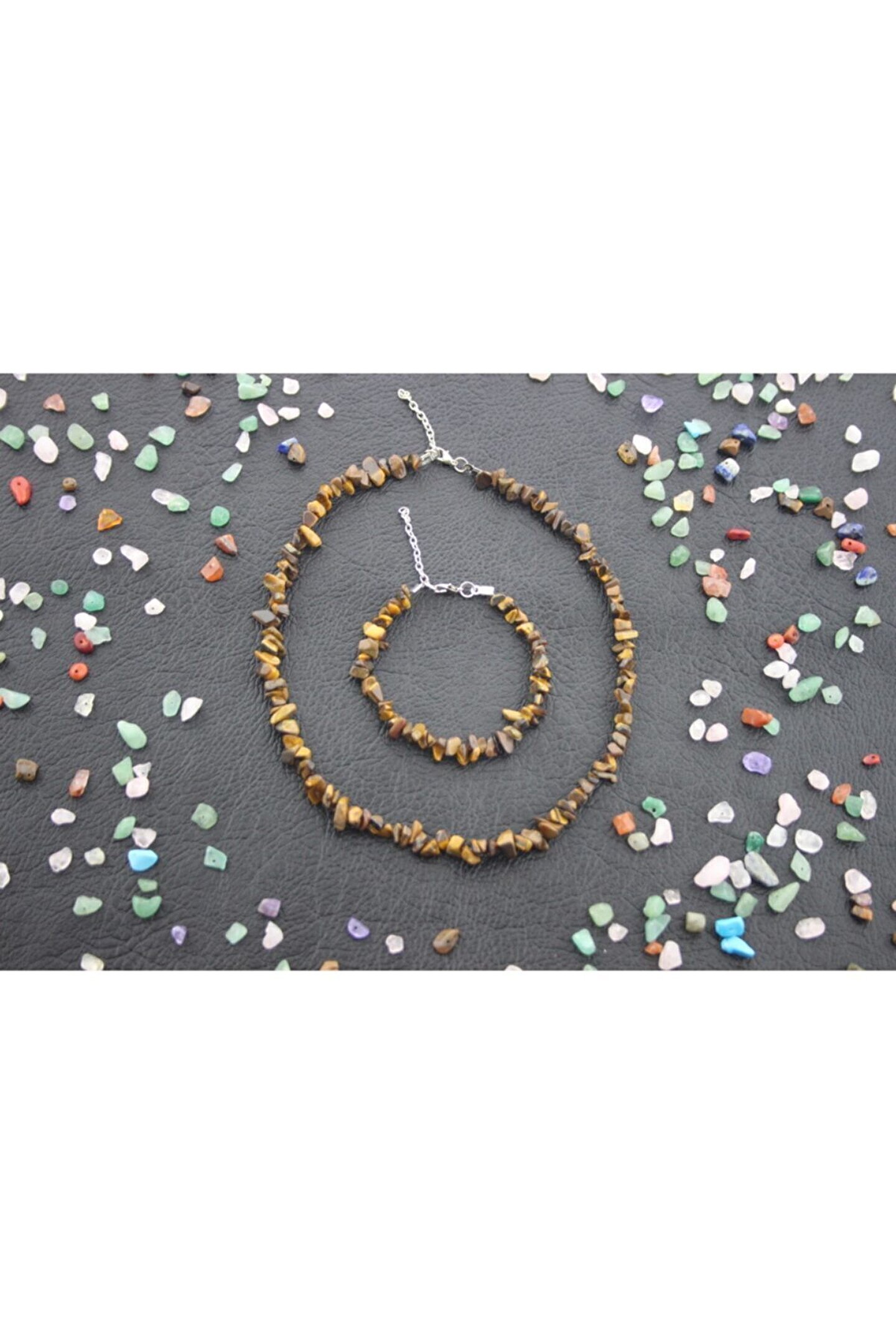 Doğal taş kullanımı sayesinde her parça benzersiz ve otantik bir görünüm sunar; Kaplan gözü tasarımı ile dikkat çekici ve şık bir aksesuar seçeneği sağlar; Kolye ve bileklik seti, günlük kullanım için idealdir ve farklı kombinlerle uyum sağlar; Taş materyali sayesinde dayanıklılık ve uzun ömürlü kullanım vaat eder;