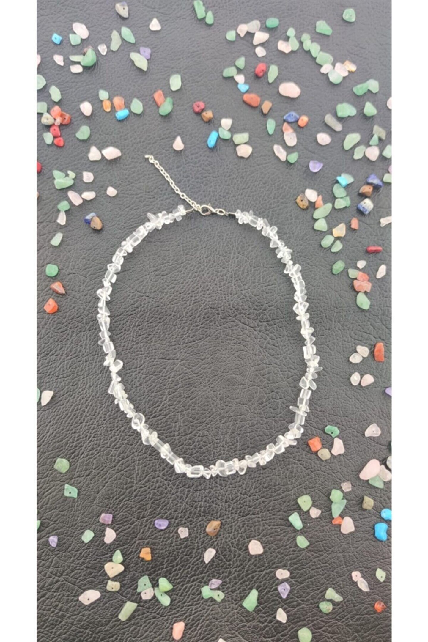 Doğal taş kullanımı sayesinde her parça benzersiz ve özgün bir görünüm sunar; Kristal kuvars taşı, şıklığı ve zarafeti ile dikkat çekerken, aynı zamanda enerji veren özellikleri ile de ön plana çıkar; Kolye ve bileklik seti, kırıktaş tasarımıyla modern ve trend bir stil oluşturur; Taşın doğal yapısı, her kullanımda farklı bir parlaklık ve renk tonu sergiler, bu da onu her kıyafetle uyum sağlayacak çok yönlü bir aksesuar haline getirir;
