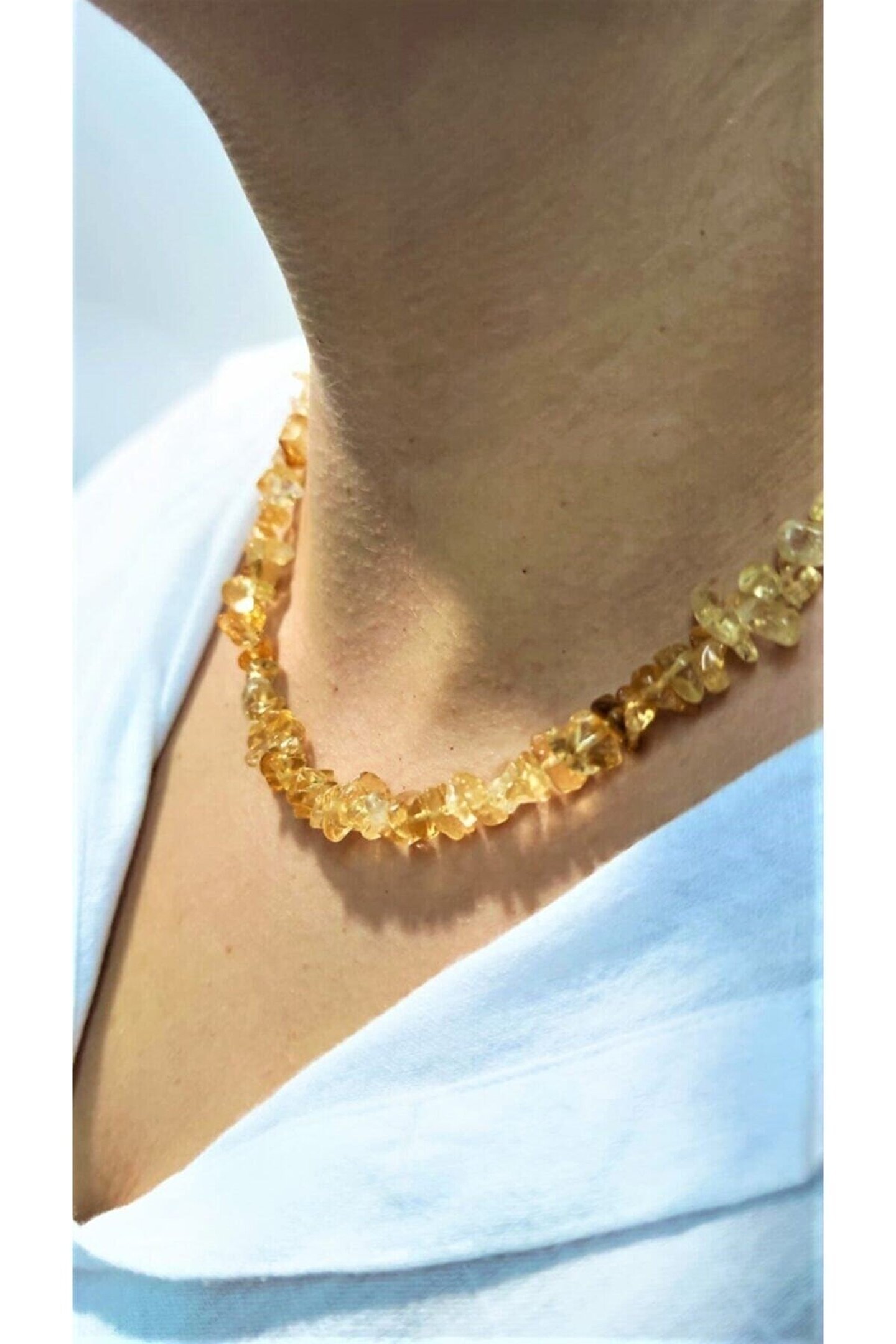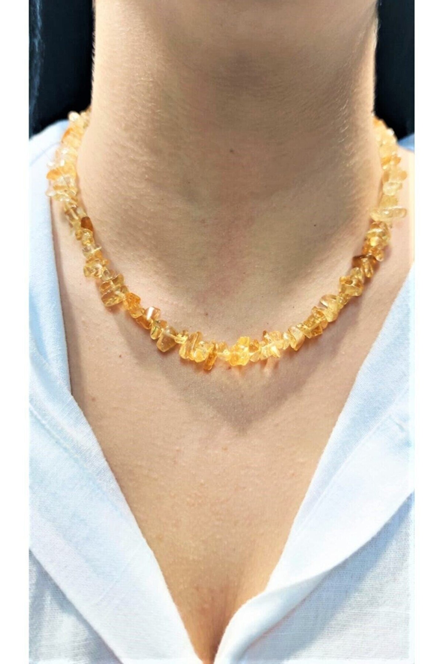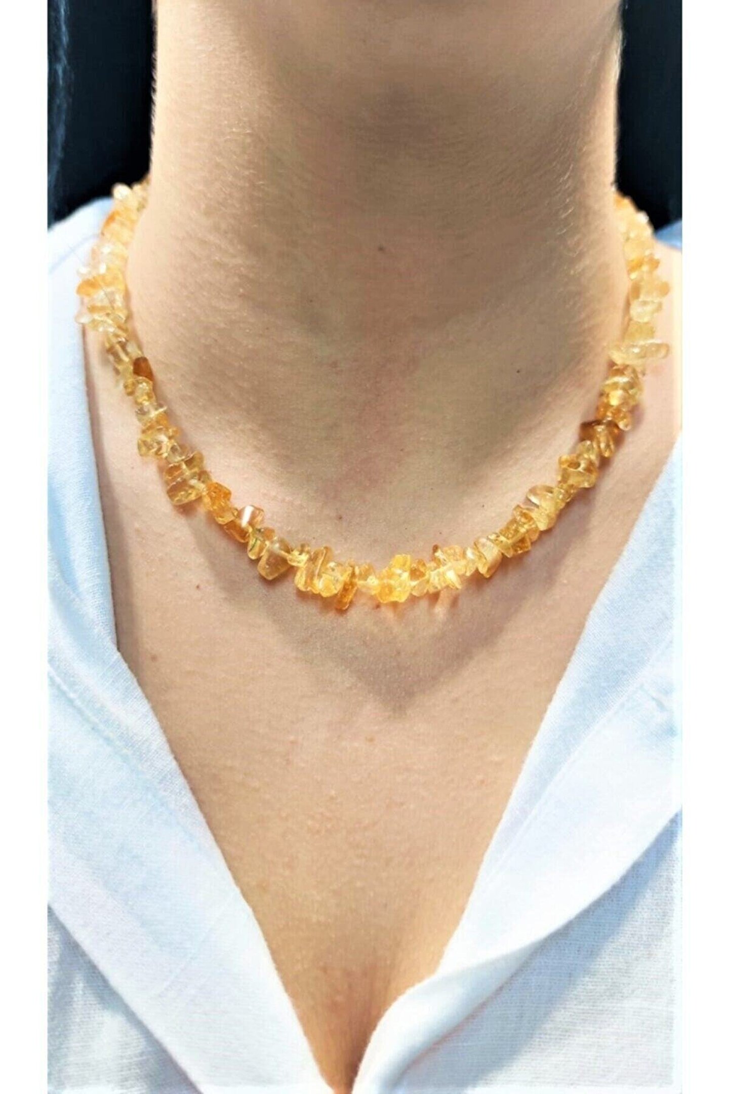 Doğal taş kullanımı sayesinde her kolye benzersiz ve otantik bir görünüm sunar; Sitrin taşı, enerjiyi yükseltici ve şifa verici özellikleriyle bilinir, bu da onu özel günlerde veya günlük kullanımda ideal bir aksesuar yapar; Kolyenin kırıktaş yapısı, modern ve şık tasarımıyla dikkat çekerken, aynı zamanda dayanıklılığı artırır; Her bir kolye, el yapımı ve özenle seçilmiş taşlarla üretilmiştir, bu da her parça için eşsiz bir hikaye anlatır;