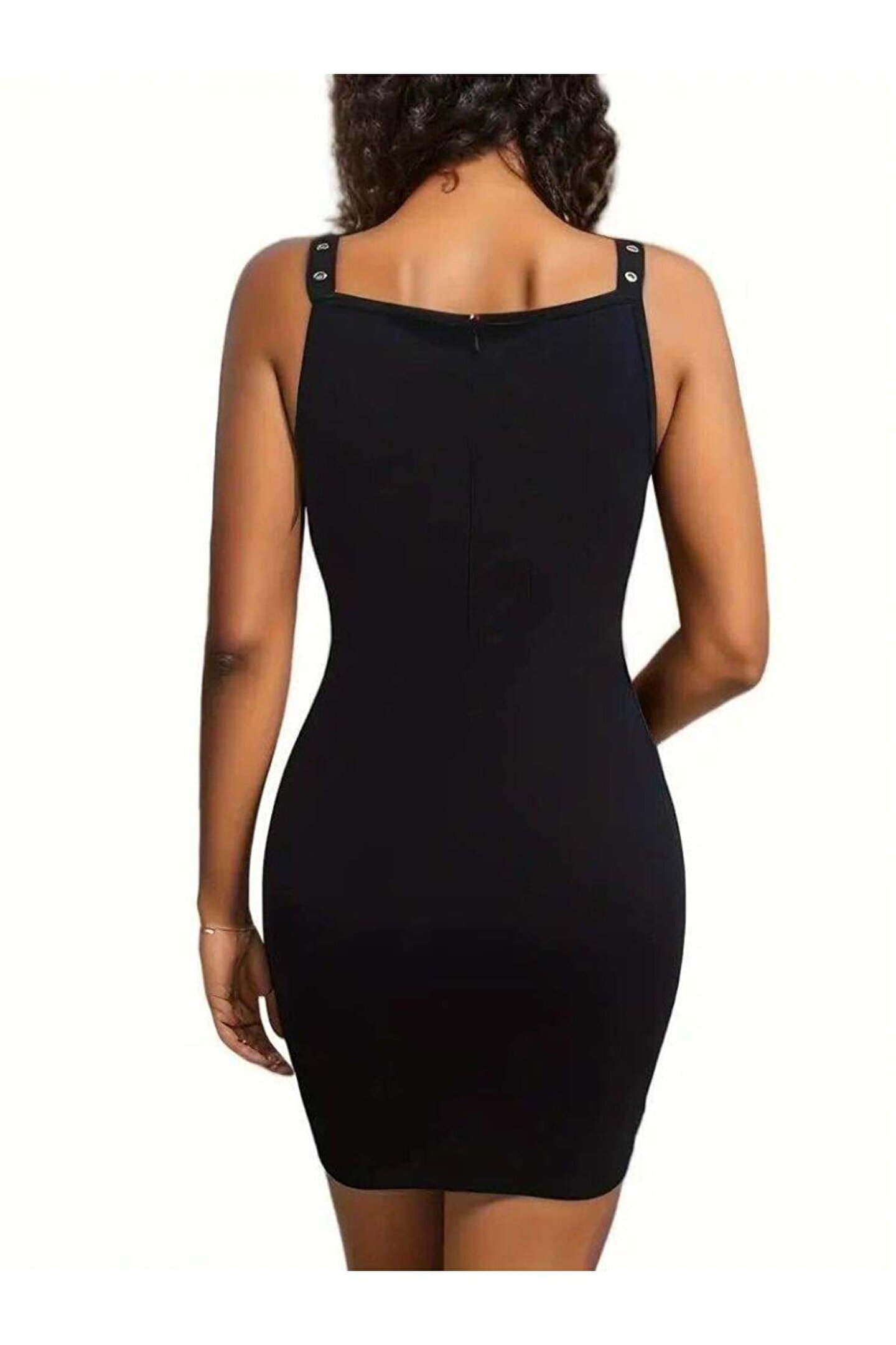 ARONA Kadın Askılı Derin V Yakalı Kuş Gözü Detaylı Janjan Krep Elbise