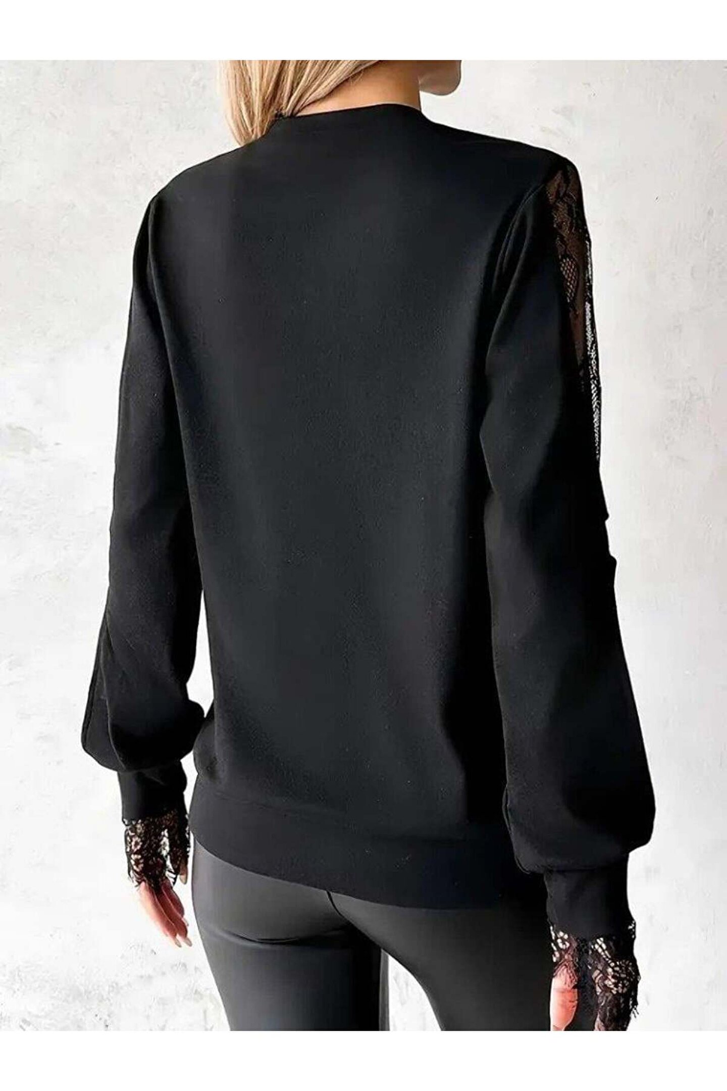 Kadın Uzun Kollu Damla Detaylı Viskon Iki Iplik Bluz