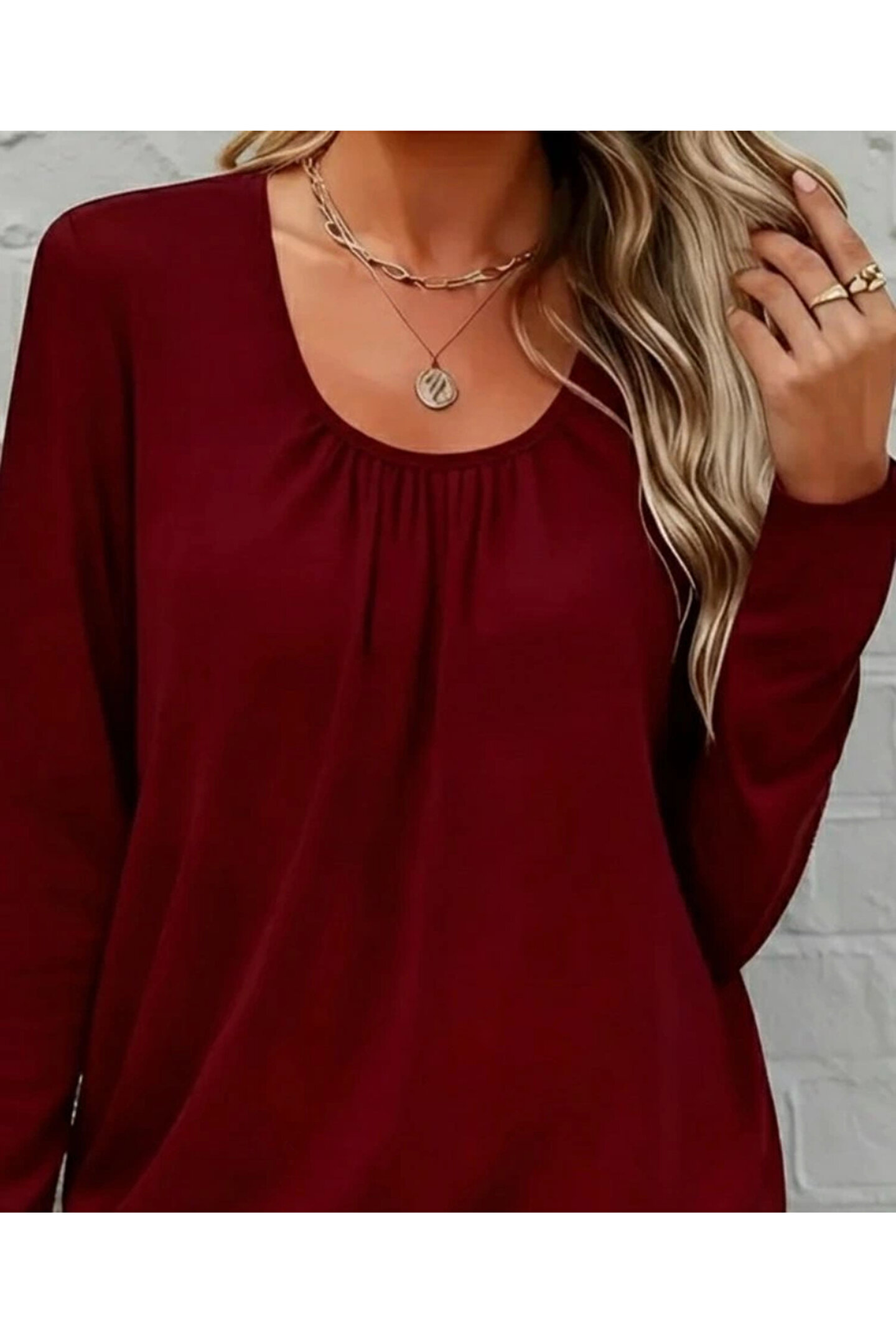 Kadın Uzun Kollu Yuvarlak Yakalı Viskon Bluz