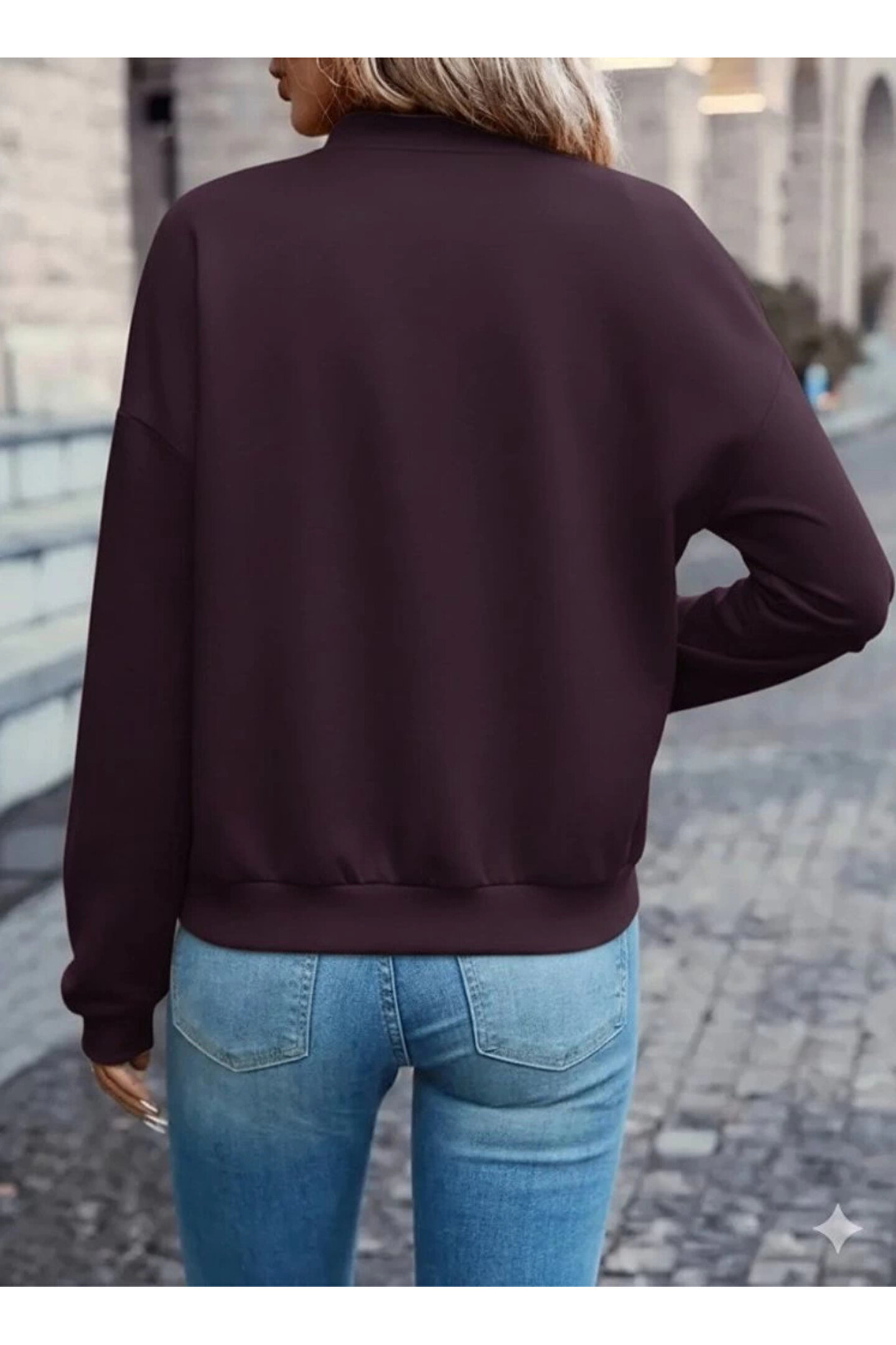 ARONA MDB Kadın Uzun Kollu önden Fermuarlı Cepli Modal Mürdüm Ceket