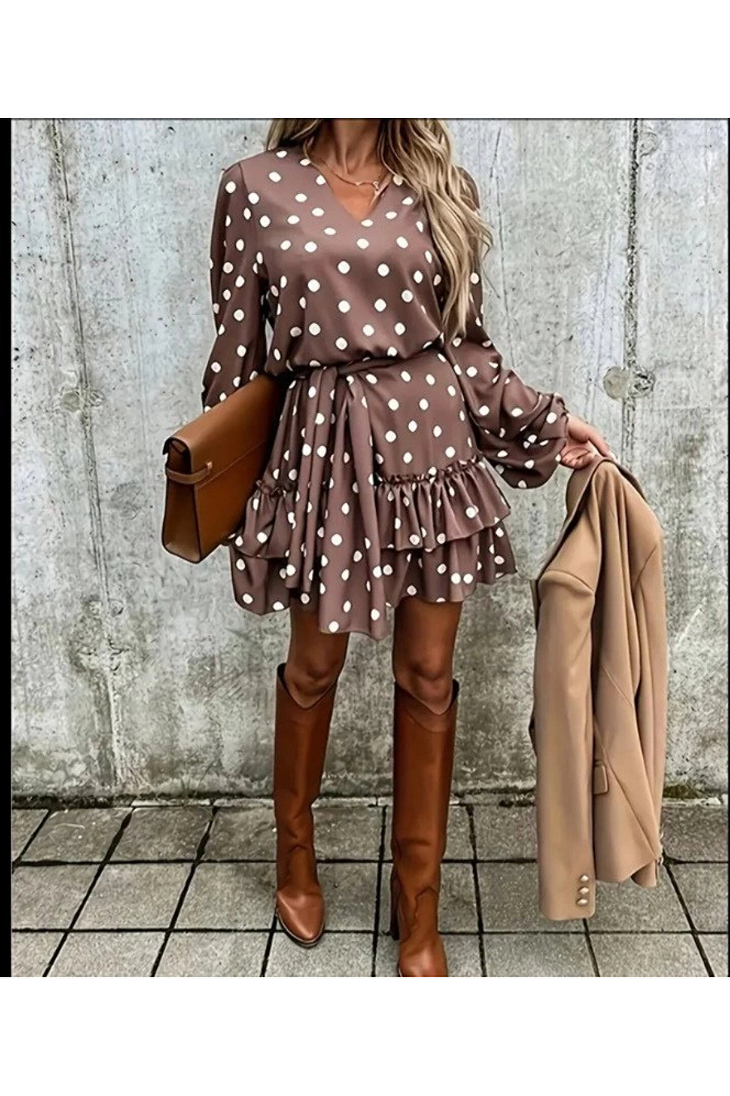 Kadın Uzun Kollu V Yakalı Belden Kuşaklı Puantiyeli Mini Elbise Modelin Ölçüleri: Boy:165, Kg:55, Göğüs:90, Bel:72, Kalça: 100 Modelin Üzerindeki Ürün M/38 Bedendir Tarz-Diğerleriyaka-V Yakadesen-Diğerlerikol Uzunluk-Uzun Koluzunluk-Minikalip-Digertarz-Digerkapatma Turu-Digerek Ozellikler-Boş/Ek Özellik Yok