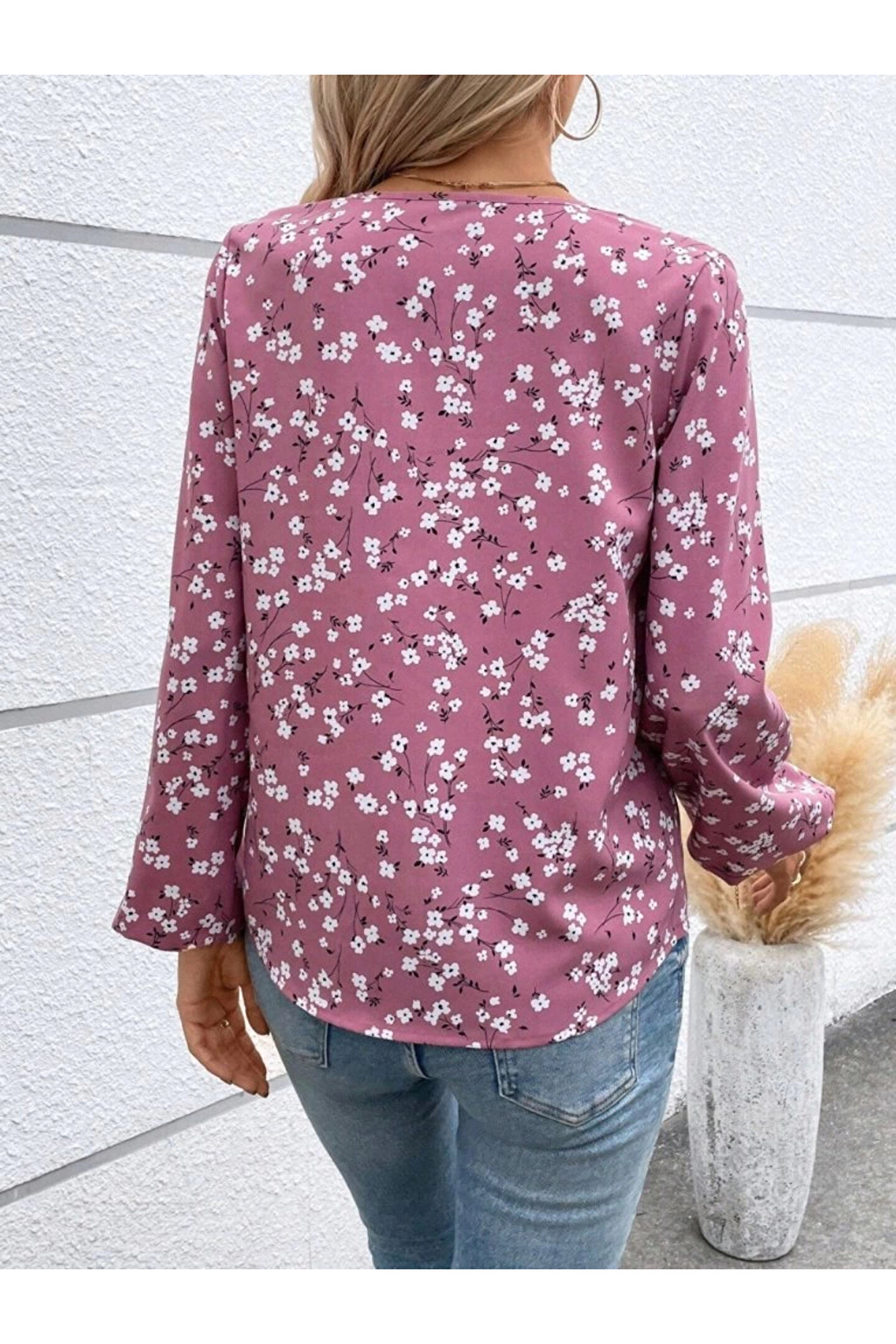 ARONA MDB Kadın Uzun Kollu V Yakalı çiçek Desenli Modal Bluz