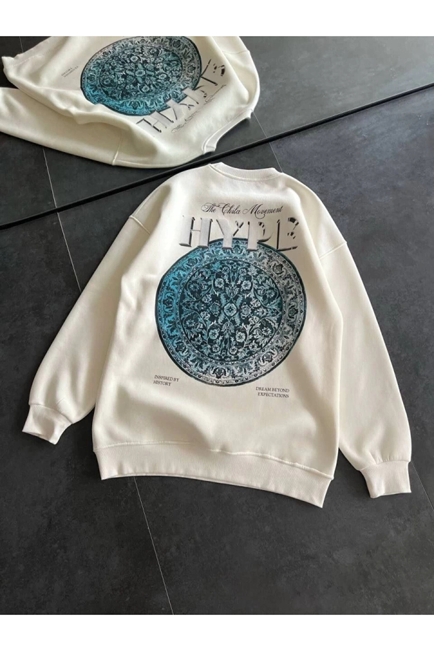 Üç İplik Bisiklet Yaka Baskılı SweatShirt - Beyaz