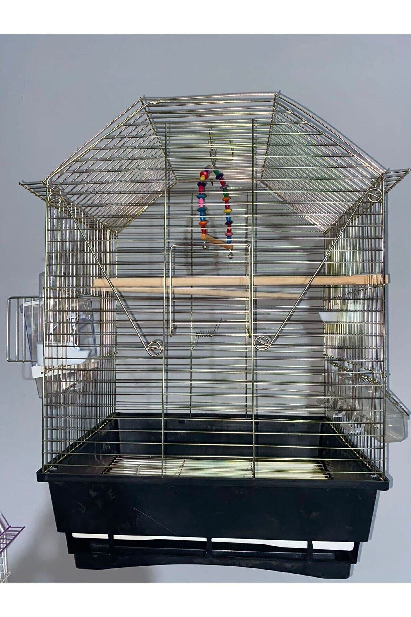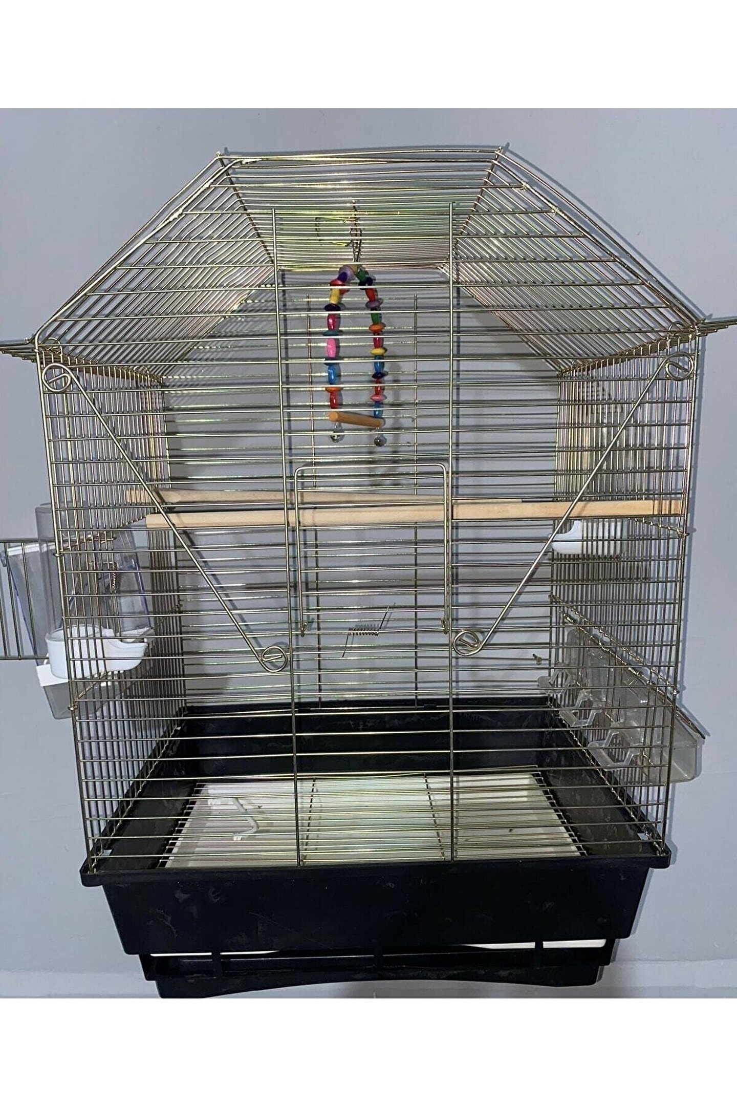 - Büyük boyutu ile muhabbet, papağan ve kanarya gibi büyük kuşlarınız için geniş bir yaşam alanı sunar.; - 5 kapı tasarımı sayesinde kuşlarınızın güvenliğini ve hijyenini korurken, onlara rahat hareket etme imkanı tanır.; - Altın kaplama detayları ile şık ve modern bir görünüm kazandırarak evinizin dekorasyonuna estetik bir dokunuş ekler.