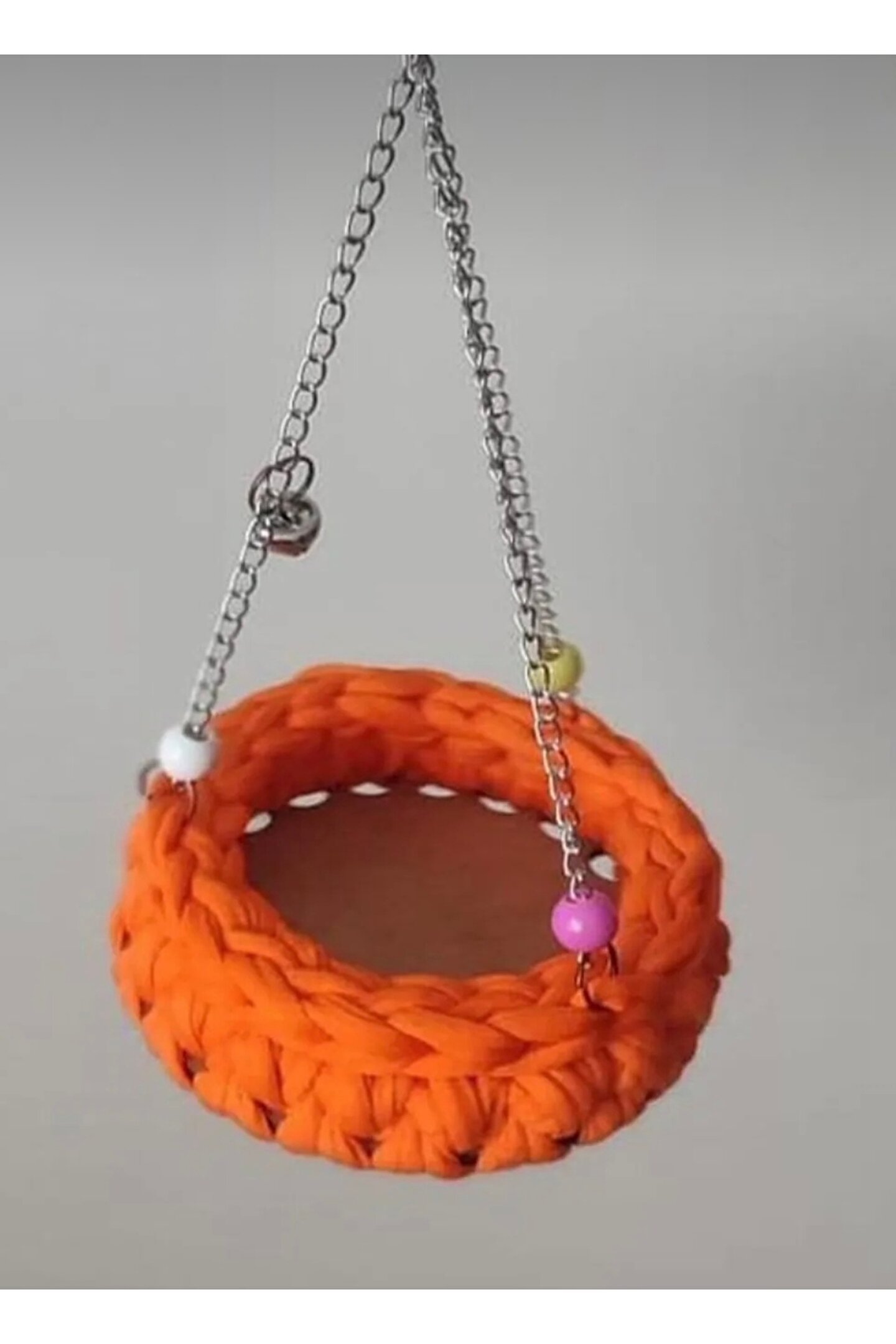 Tamamen el örgülü kuş hamağı zilli kuş salıncağı çok eğlenceli kuşların ilgilisini çeken bir oyuncaktır