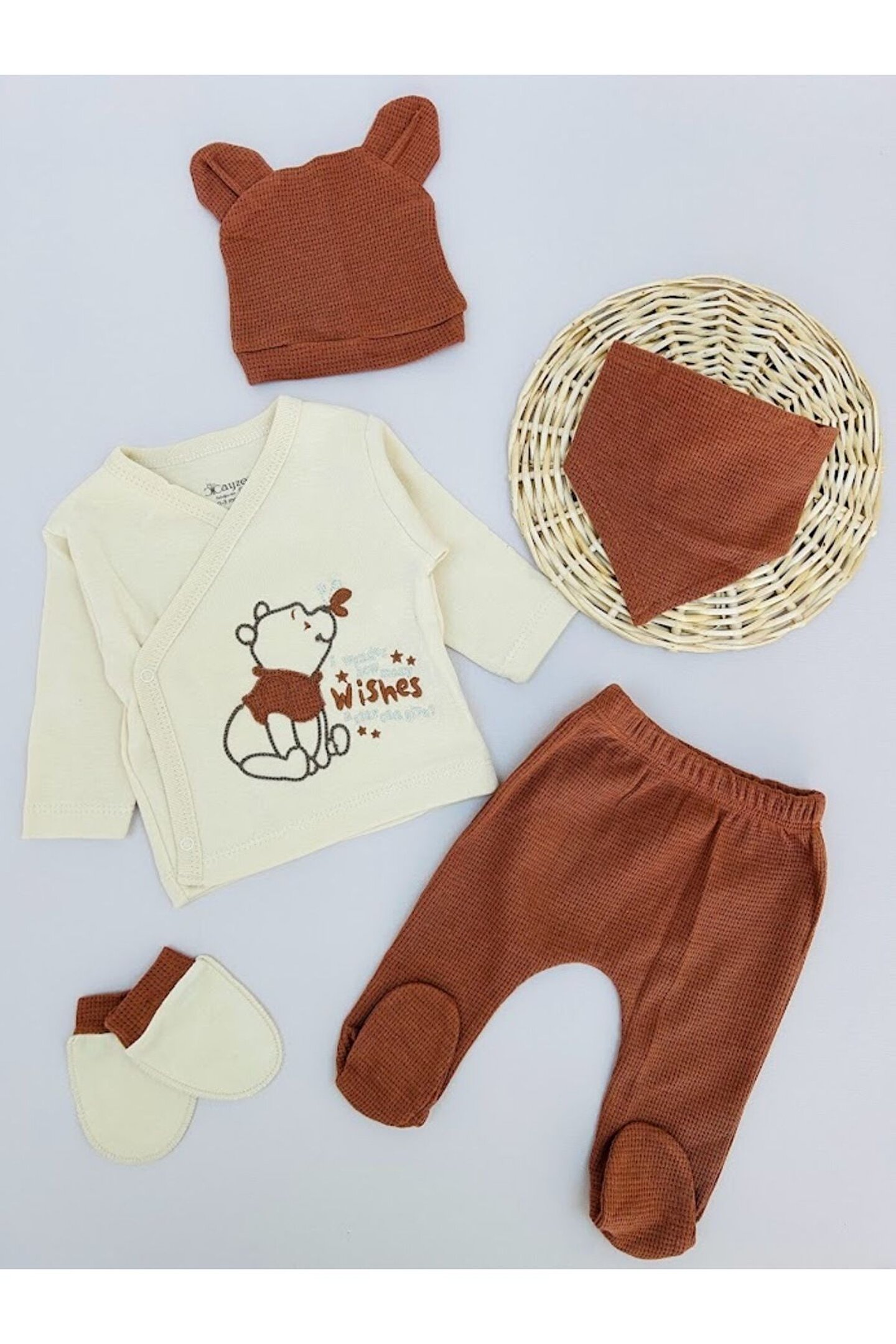 Erkek Bebek Sevimli Ayıcık Beş Parça Hastane Çıkışı Zıbın Seti