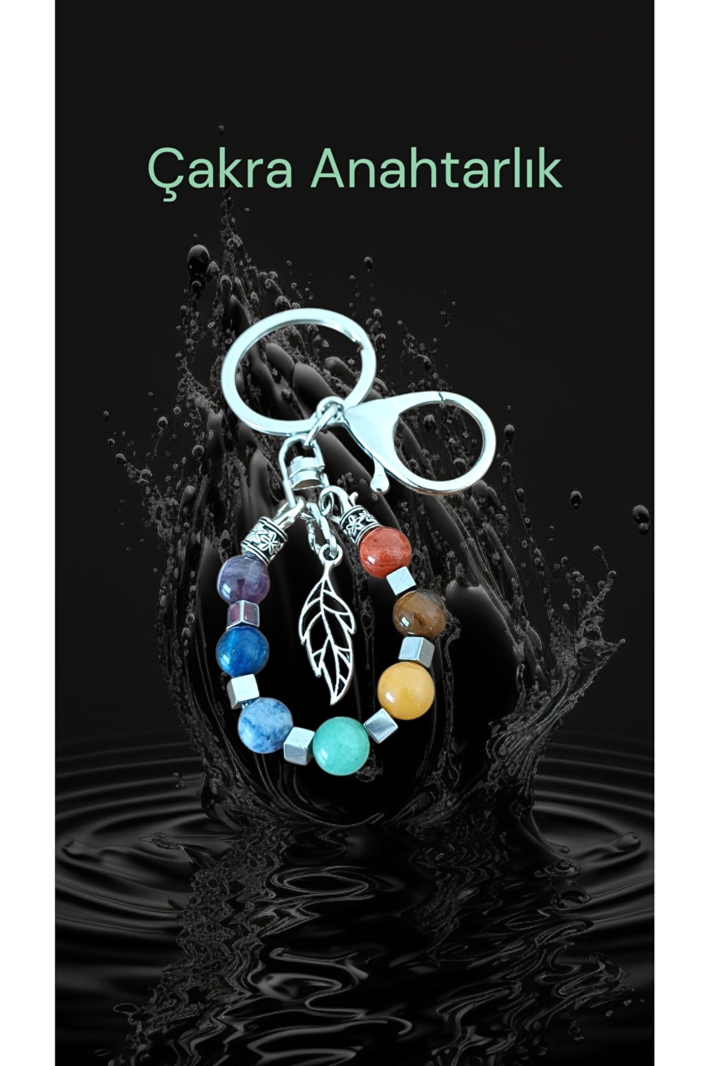arzela Doğal Taş 7 Çakra Anahtarlik Çagra Dengesi 8mm Doğal Taş
