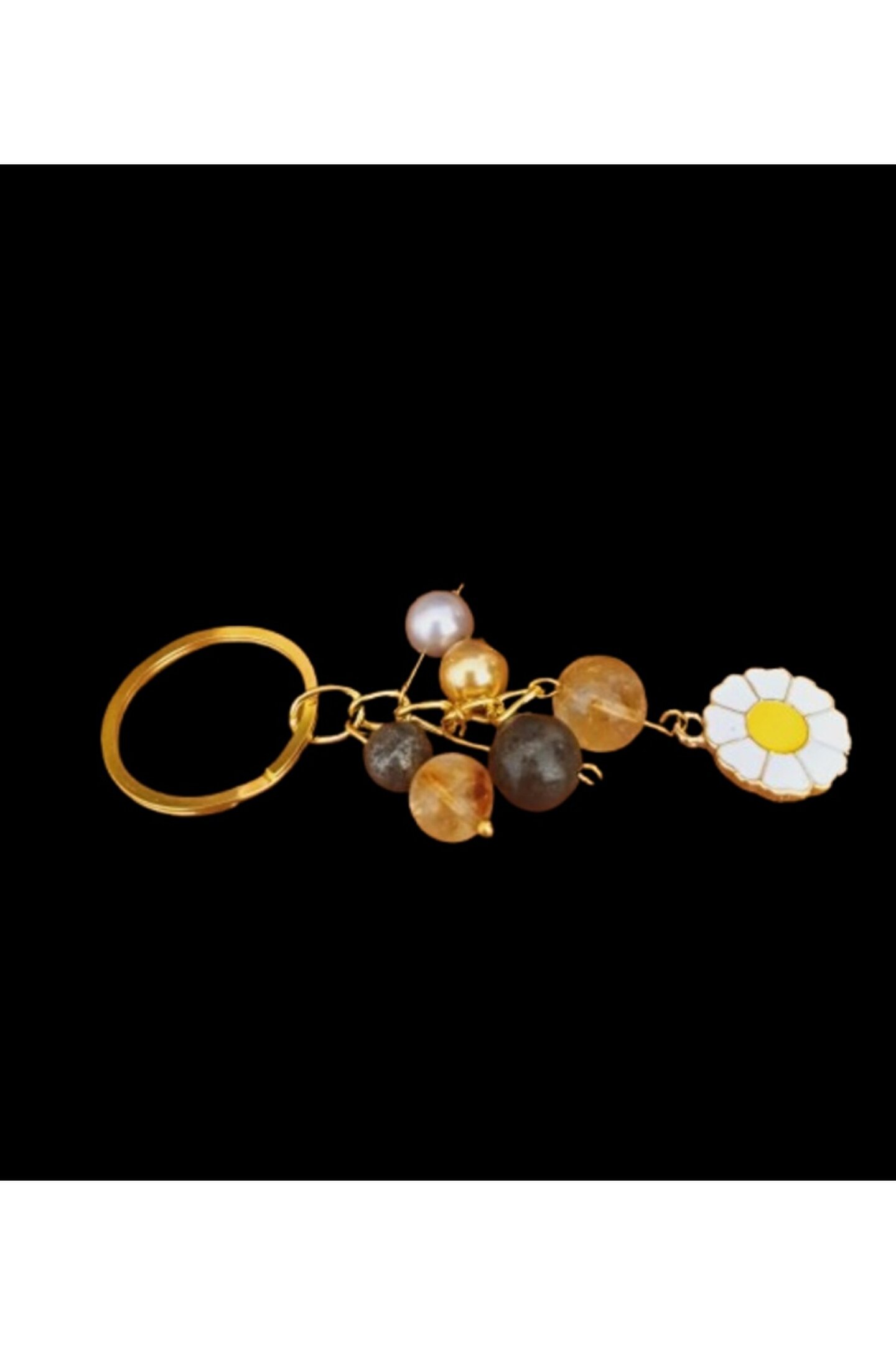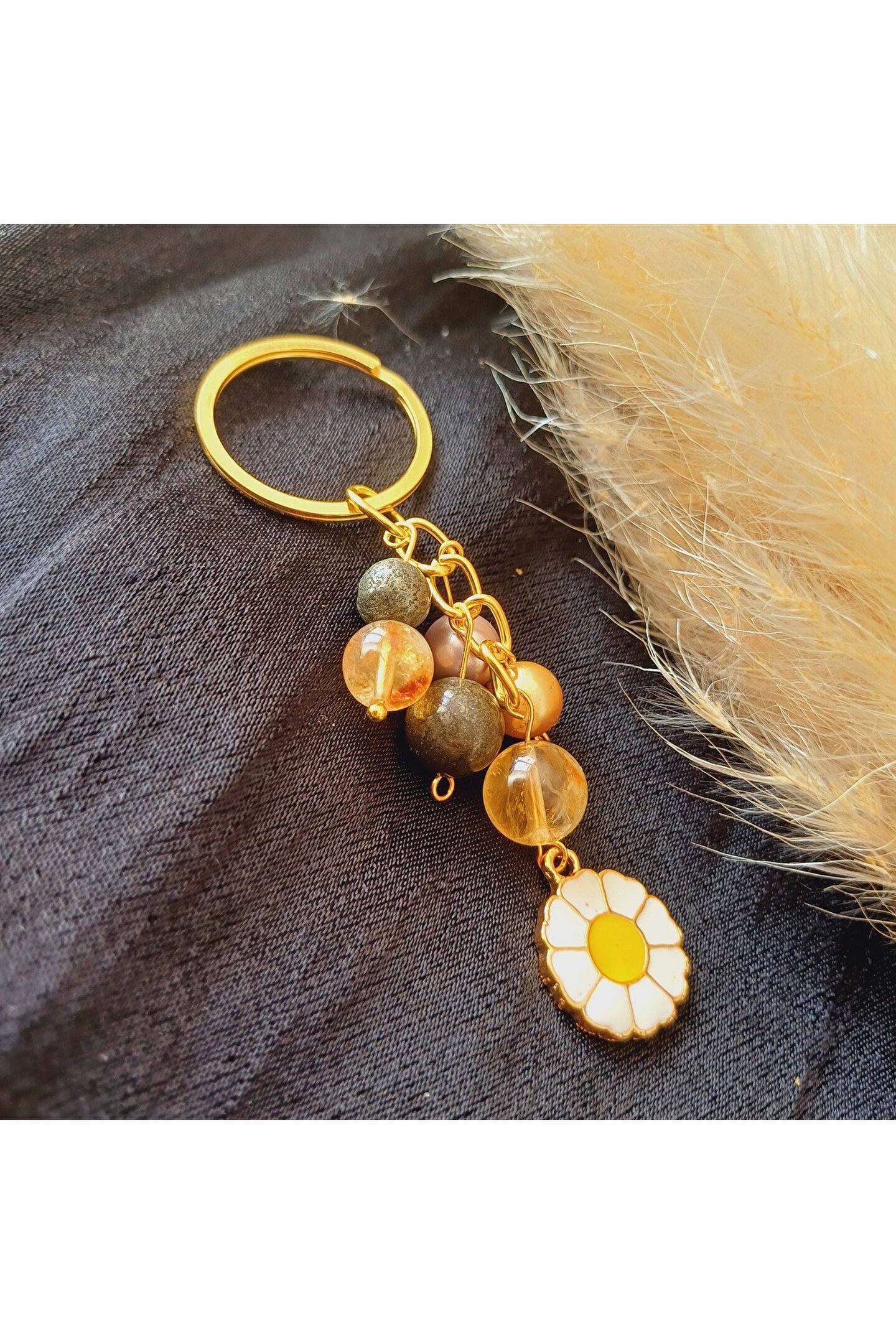 arzela Doğal Taş Anahtarlik Bolluk Berekt ve Koruma Anahtarlığı Sitrin Pirit ve İnci