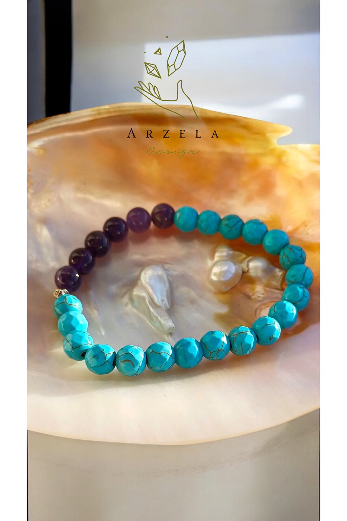 arzela Doğal Taş BİLEKLİK AMETİST ve FİRUZE