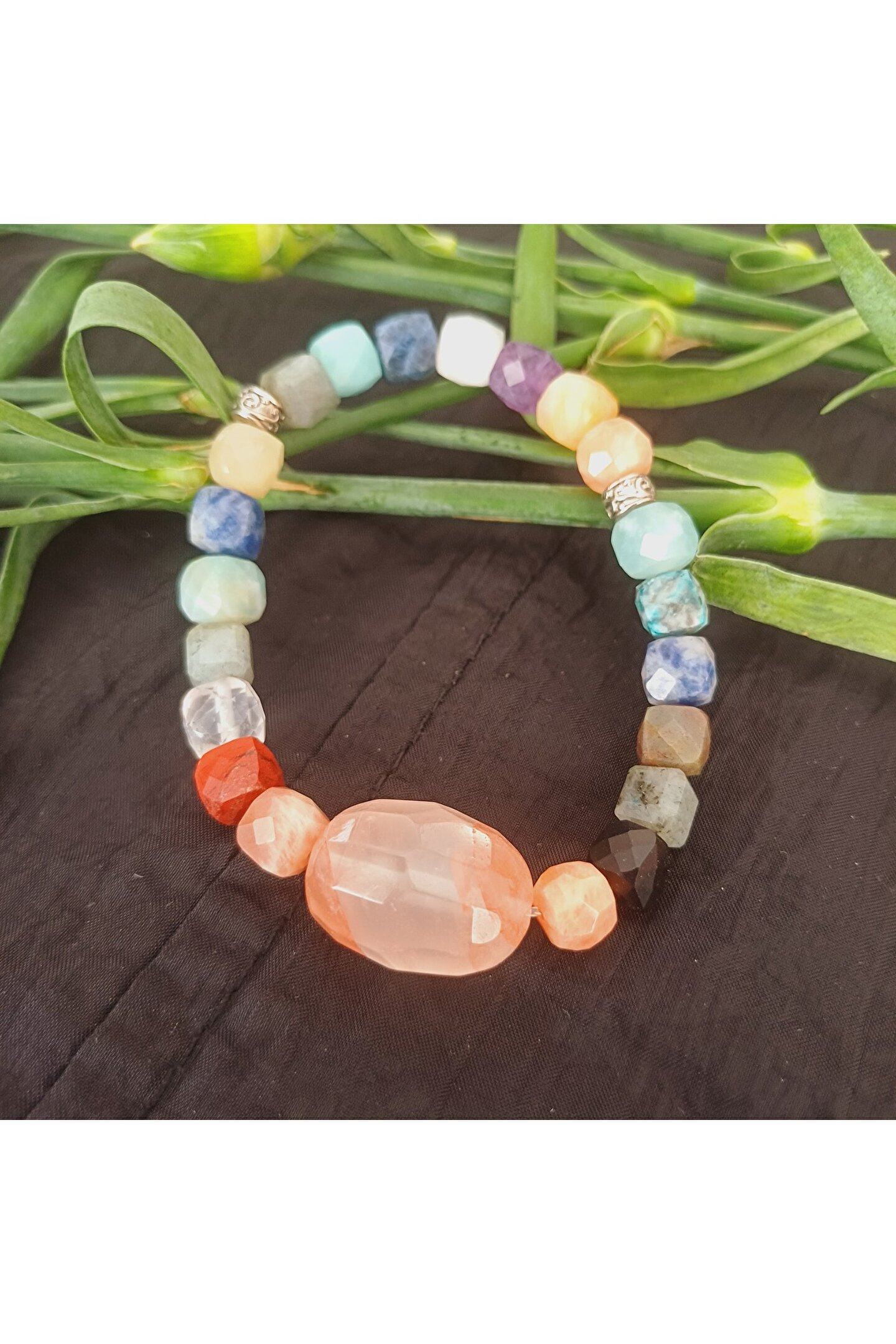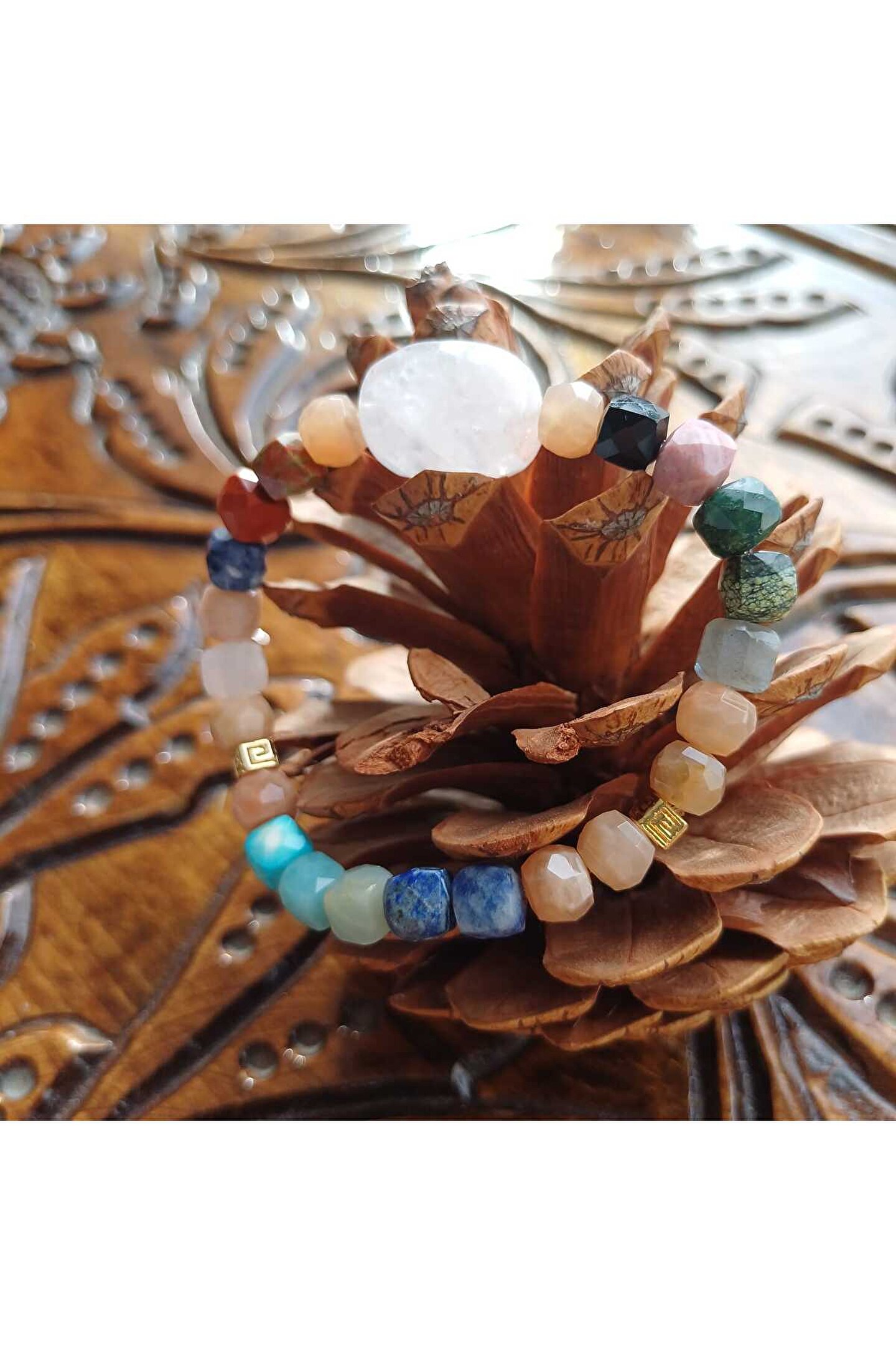 İri boy DUMANLI KUVARS maneviyatı ve bilgeliği arttırır ; Aydınlanma yoluyla blinci yükseltir ; Düşünce sürecini ve duyguları netlestirir ; Konsantrasyonu sağlar,öğrendiklerini akılda tutmaya yardımcı olur ; Dikkat dağınıklığını faydalıdır ; İlişkilerde tılsım olarak kullanılır ; Antik çağlarda Kuvarsin büyülü gücüne inanılırdı ; 19 farklı çakra taşı adeta dans ederken ; Tum çakralara hitab eden bu formül şifa ile frekansı yükseltir,kisiye koruma sağlar ; Taş dizlimi formüllüdür taslar yeni günü,umudu, isiltiyi temsil eden her döngüde GÜNEŞ TASI arasına dizilmistir Taslar faset kesim ve en iyi kalitededir Materyal altin kaplamadir Su ve kimyasala temas ettirmeyiniz Yedek misina ve 2 adet taşla birlikte gönderilecektir
