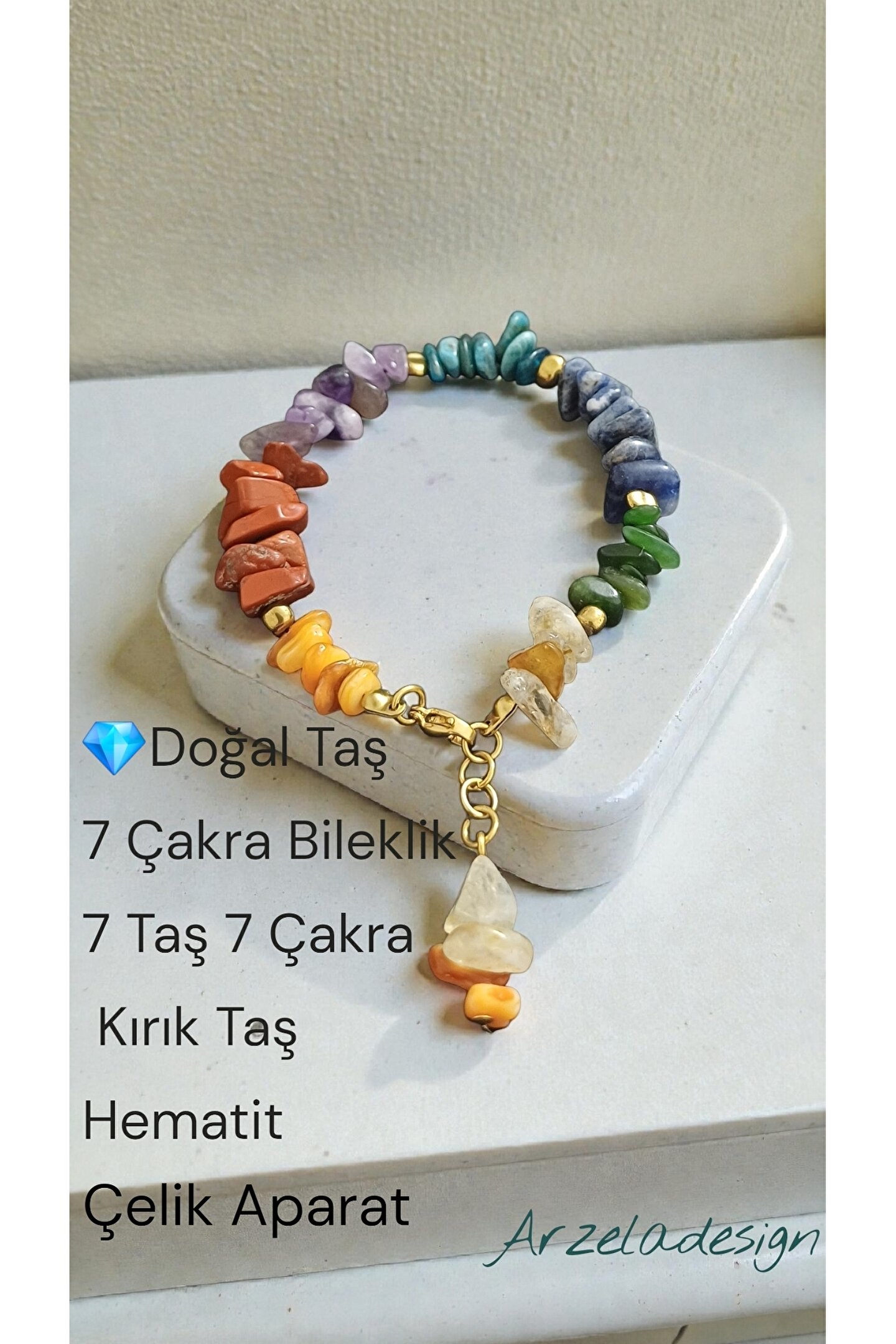 arzela Doğal Taş Çakra Bileklik Celik Aparat
