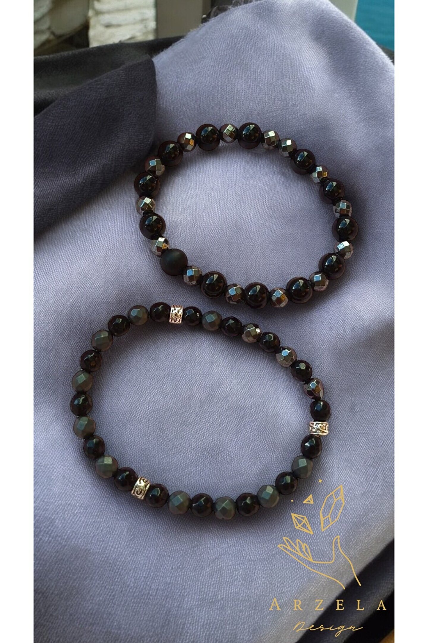 arzela Doğal Taş Hematit Ve Boncuk Bileklik 2 Li