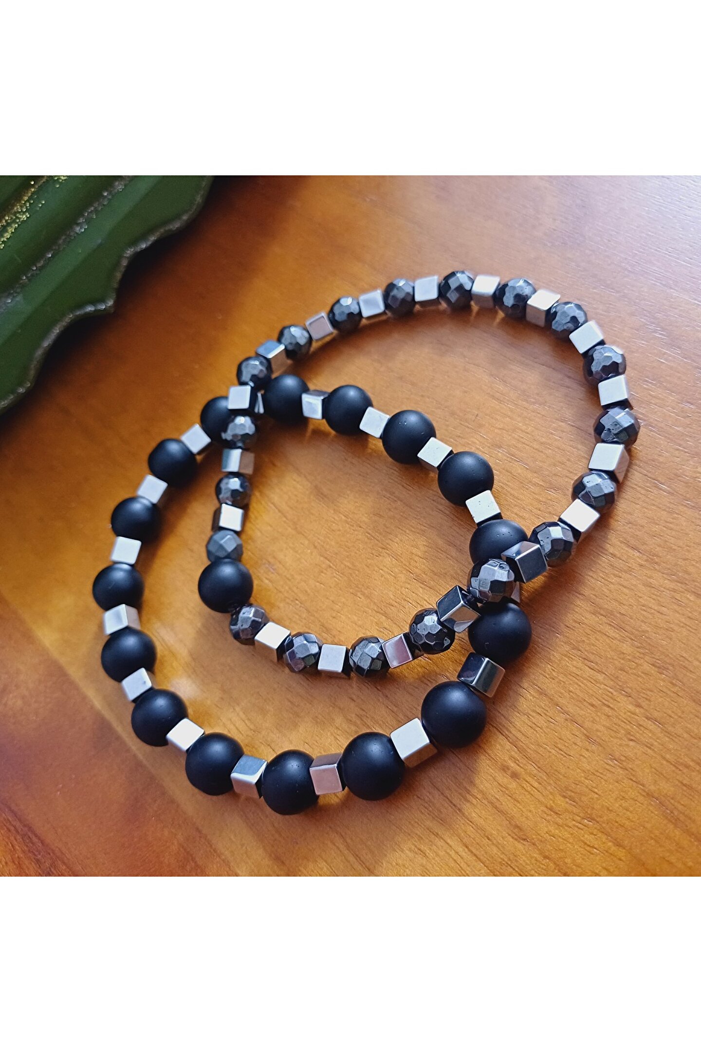 arzela Doğal Taş Hematitli Boncuk Bileklik Unisex Kadın Erkek