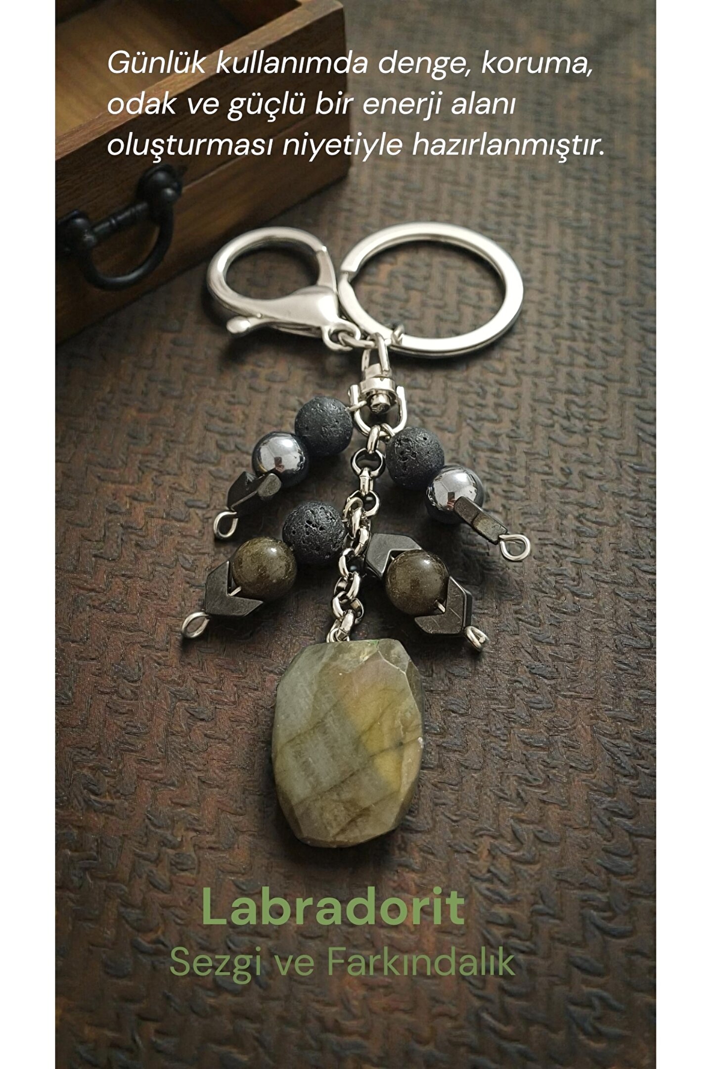Labradorit Taşı, mavi, yeşil ve altın yansımalarına sahip, göz alıcı renkleriyle dikkat çeker.; Koruyucu özellikleri ve enerji dengeleme gücüyle bilinen bu taş, spiritüel gelişim ve zihinsel netlik sağlamak için kullanılır.; Labradorit, özellikle içsel gücü keşfetme, sezgi ve farkındalık konularında yardımcı olur.; Diger taslarin etkisi ile birlikte titresimi yukselir ve yuksek bir koruma ve öngörü etkisi uyandırır