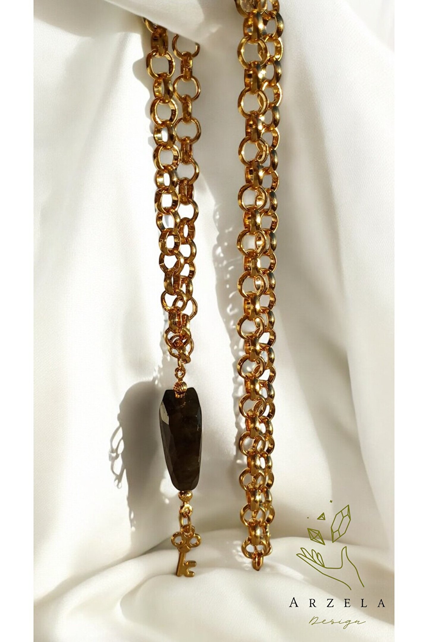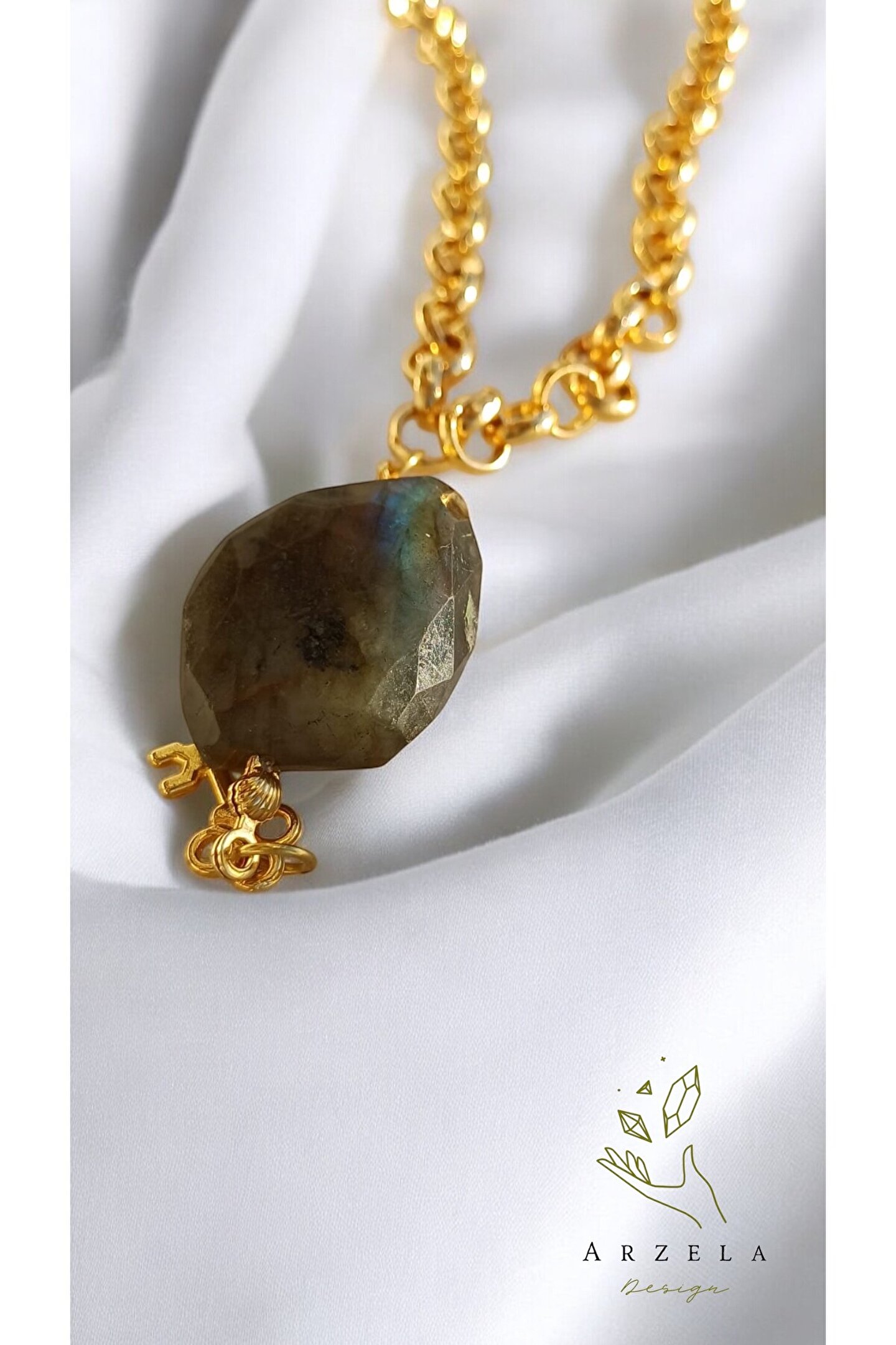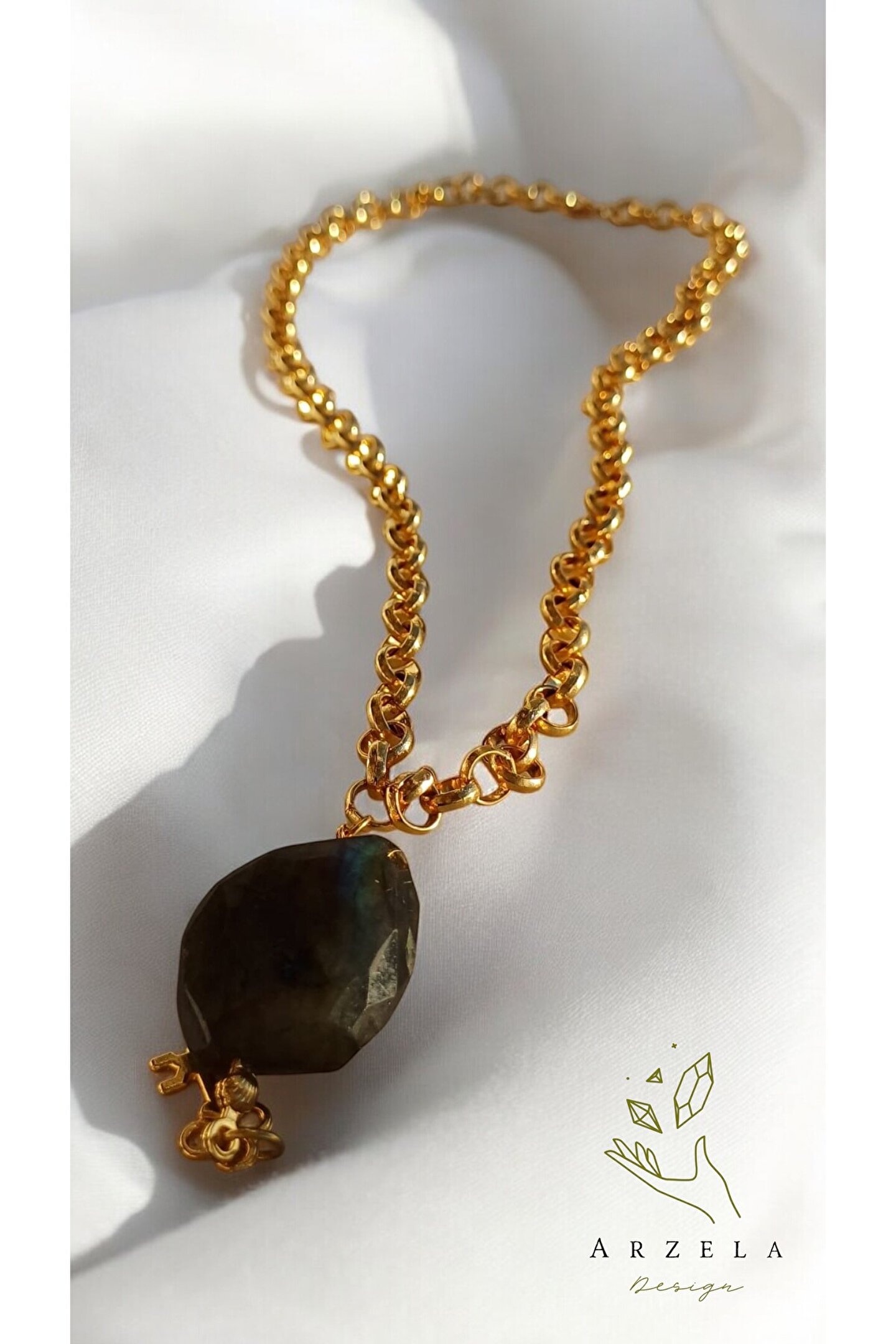 LABRODİT taşı, sadece kendine olan özgüveni ve inancı desteklemekle kalmaz, bunun yanında evrene olan güveni de destekler ve yüksek bilince erişmeye de yardımcı olur.; Yoğun ve karmaşık zihni sakinleştirir ve olumsuz enerjilerden korur.; Aynı zamanda enerji verir ya da mevcut olumsuz enerjileri de temizler.; Kişiyi topraklar Spiritüel yanınızı açığa çıkarır Zincir altın kaplamadır Kimyasala temas ettirmeyiniz Ürün kutu içerisinde gönderilecektir Aparatlarda kucuk farklılıklar olabilir Taslar doğal kesim olduğu için ufak sekil farklılığı olabilir