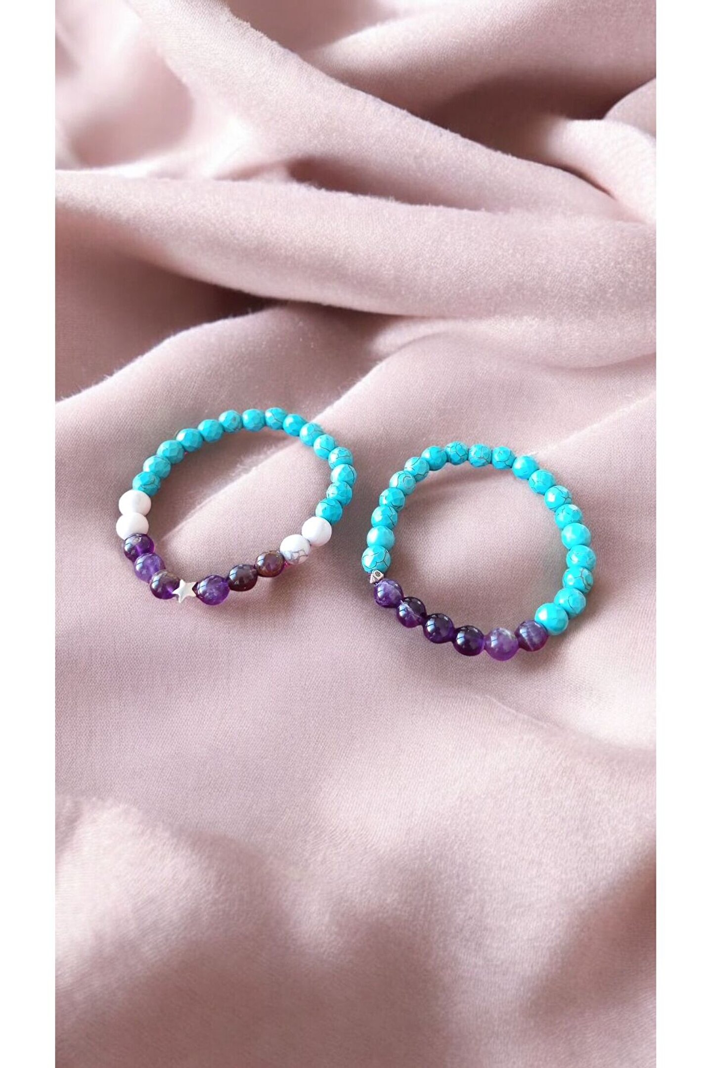 arzela Doğal Taş Turkuaz Ametist Bileklik 2 Li Koruma Ve Sakinlik Bilekliği 8mm