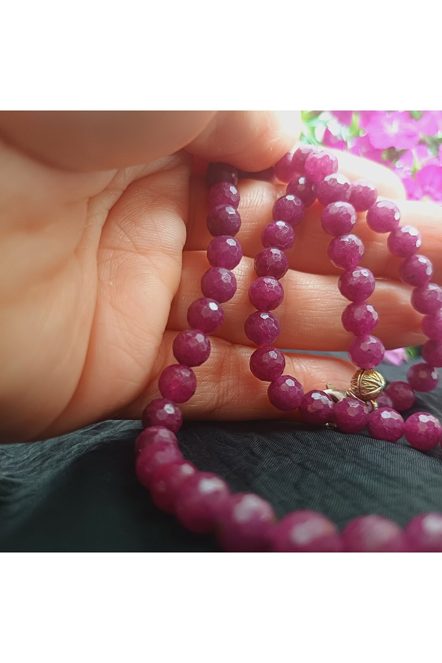 YAKUT KRİSTALİ Yakut taşı, fiziksel, zihinsel ve ruhsal faydaları ile bilinen güçlü bir taştır.; Cesaret, özgüven ve kararlılık artırıcı özellikleriyle tanınır.; Kişinin enerjisini dengeleyerek zorluklarla başa çıkma gücü verir.; Aşk, tutku ve derin duygusal bağları simgeler.; İlişkilerde güveni artırarak bağları kuvvetlendirir.; Ruhsal olarak kişiye destek verirken fiziksel sağlığı da olumlu yönde etkiler.; Kan dolaşımını düzenleyip bağışıklık sistemini desteklediğine, toksinlerden arınmaya yardımcı olduğuna inanılır.; Meditasyon sırasında kullanılan yakut taşı, ruhsal farkındalık sağlamak ve zihni rahatlatmak için tercih edilir.; Gümüş kaplama aparat kullanılmıştır Aparat deseninde değişiklik olabilr