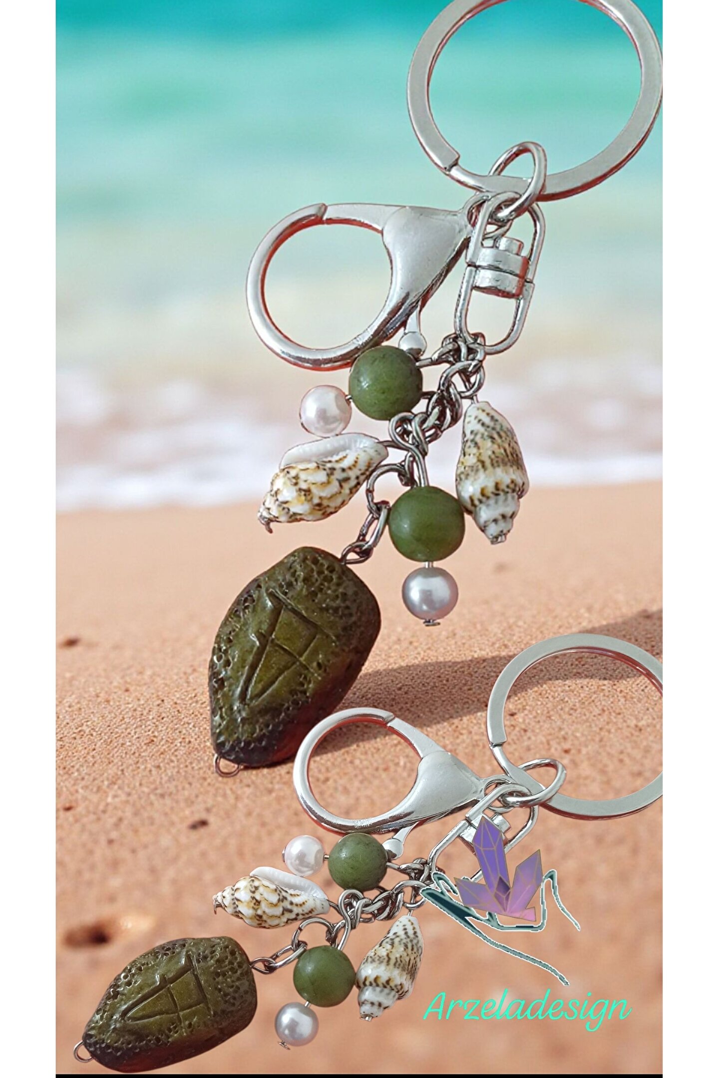 arzela Doğal Taş Yesim Midye vu Boncuk Uçlu Anahtarlık Bolluk Bereket Enerjisi