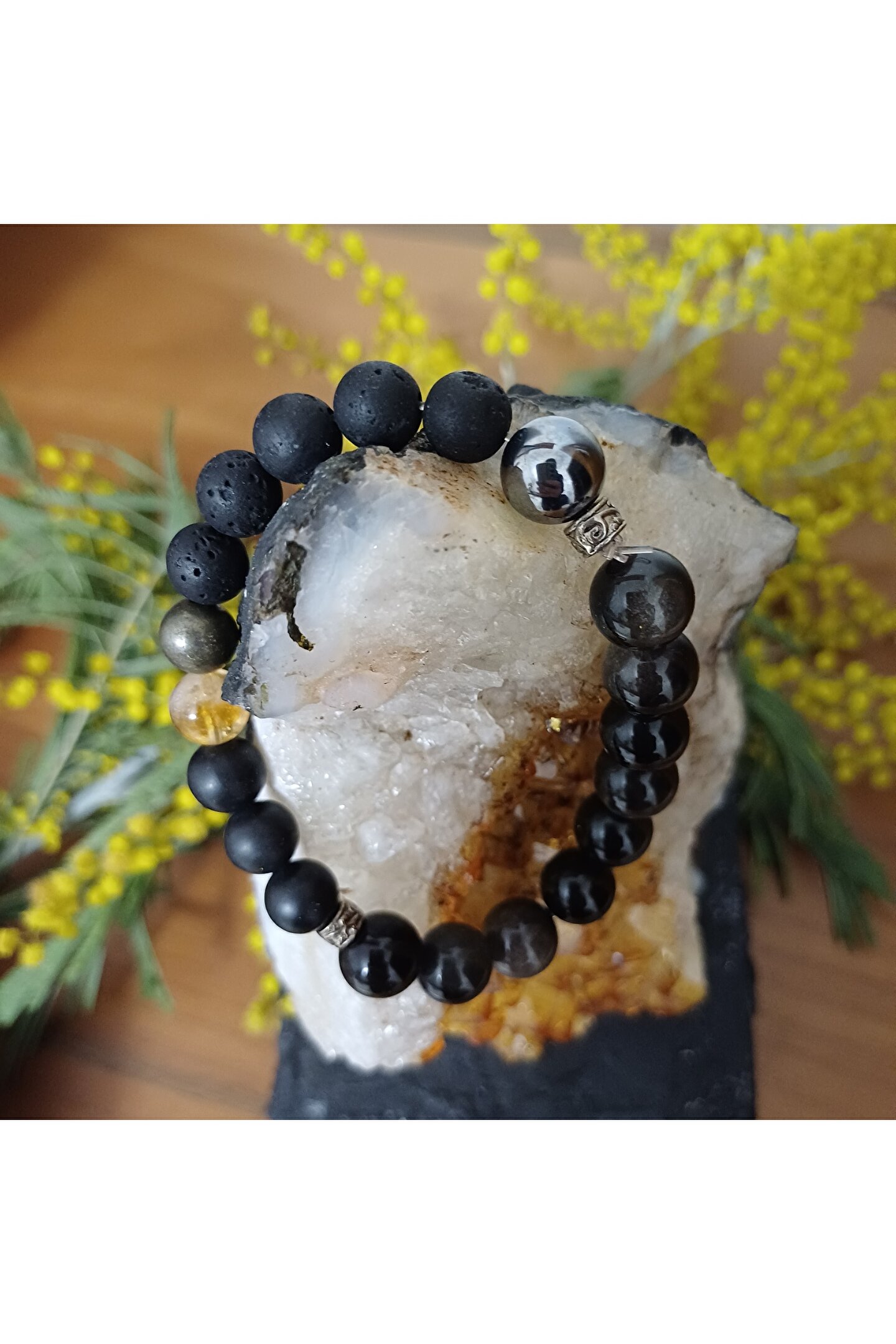 OBSİDYEN TAŞI Obsidiyen'in negatif enerjiye karşı bir kalkan görevi görür ve sizi bu iyi yaşamda topraklamak için güçlü bir çapadır.; Faydaları ve İyileştirici özellikleri bakımından zengin olan Obsidiyen'in altından çok daha değerli olduğunun düşünülmesinin bir nedeni var.; Bu taş tamamen büyümeyi teşvik etmekle, sizi korumakla ve bu dünyada kendimizi nasıl güvende hissettiğimizin özü olan o kök çakrayla bağlantı kurmakla ilgilidir.; Obsidiyen sadece zihninizi ayarlamakla kalmaz, aynı zamanda fiziksel ve ruhsal bedeninizi de tamamen hizada tutmak için çalışır.; Lav tasi korumasi,sitrin ve pirit korumasi ile desteklendi Materyal gümüş kaplamadir Ürün kutu icerisinde,yedek misina ve tasla gonderilecektir