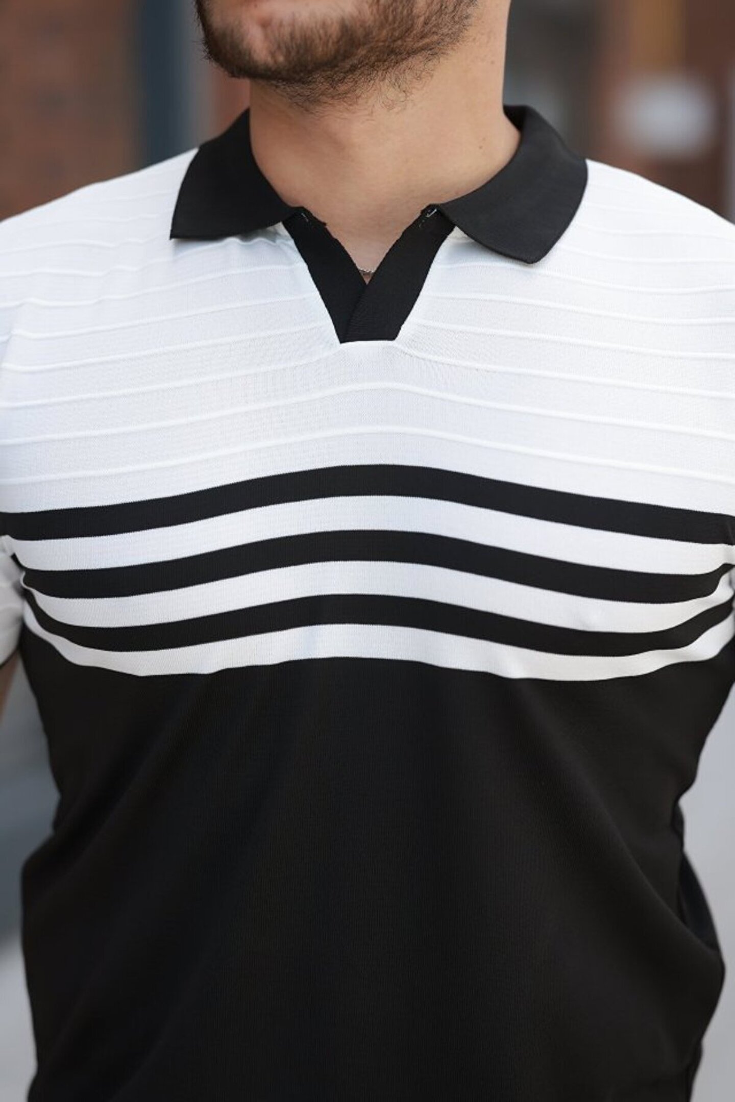 Erkek çizgi Desenli Yakalı Kısa Kollu T-shirt
