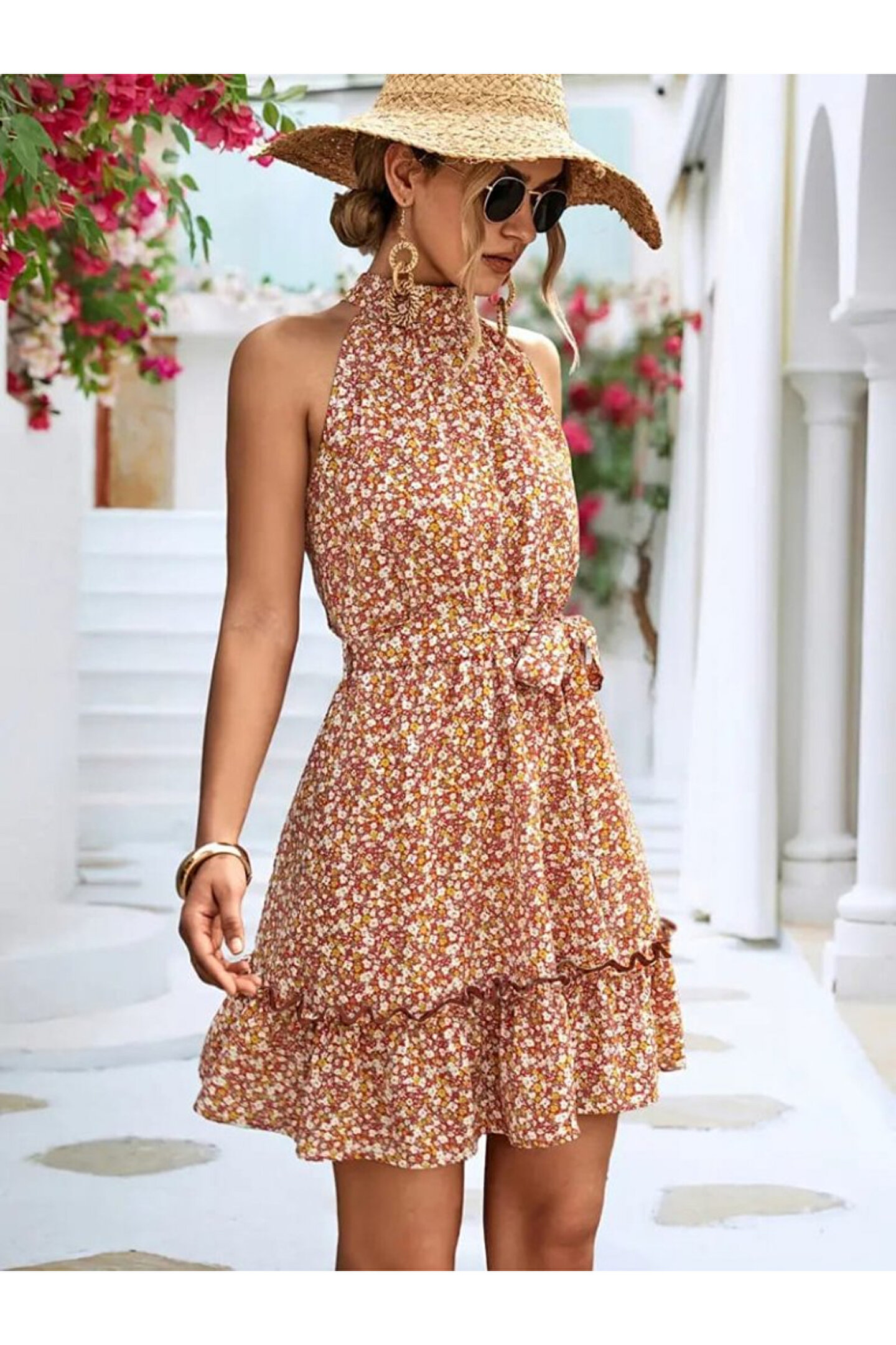 Kadın Eteği Volanlı Halter Yaka Süprem Elbise