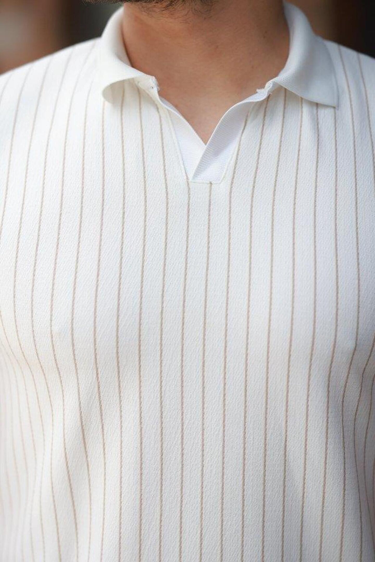 Erkek Yakalı çizgi Desenli Kısa Kollu Tişört