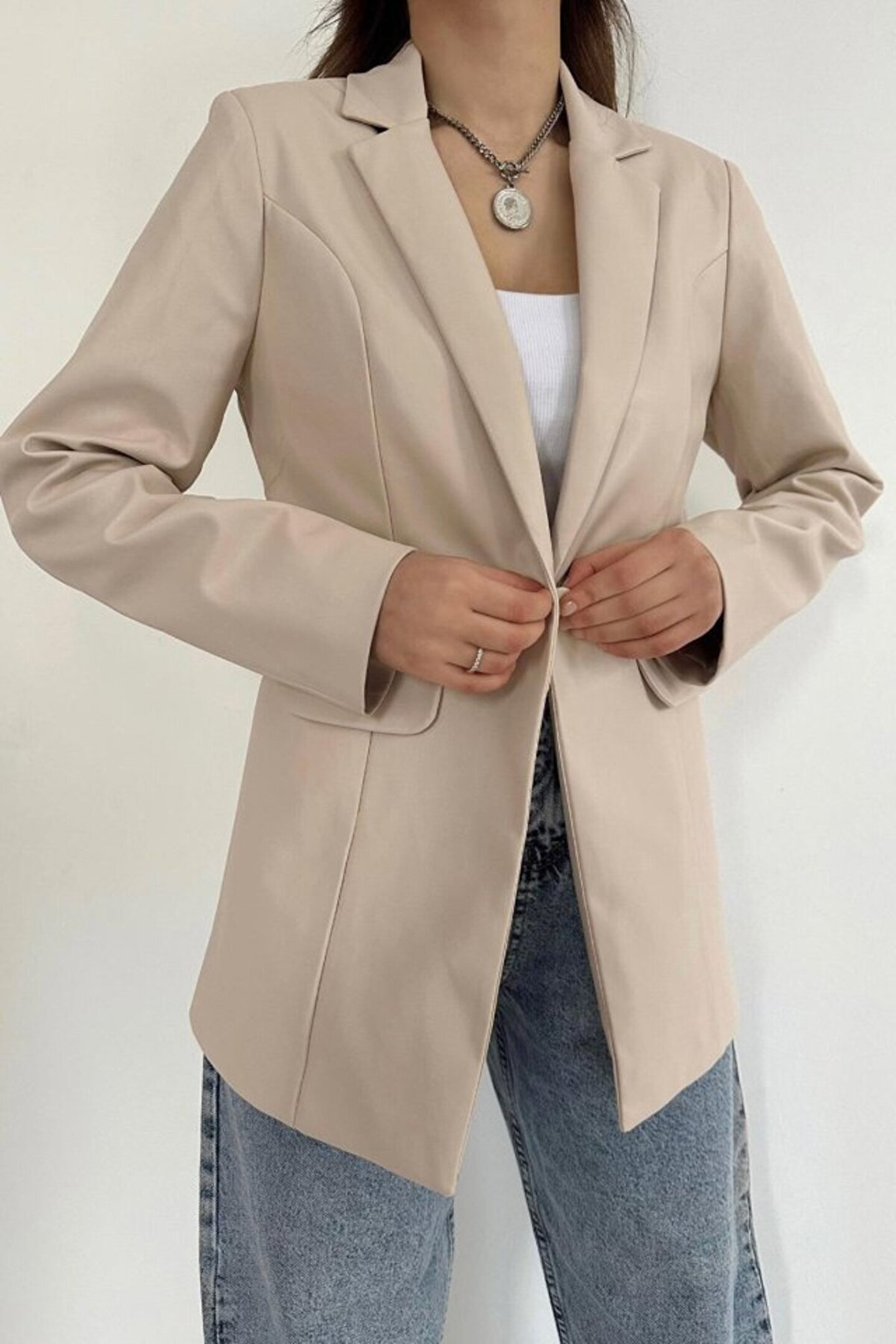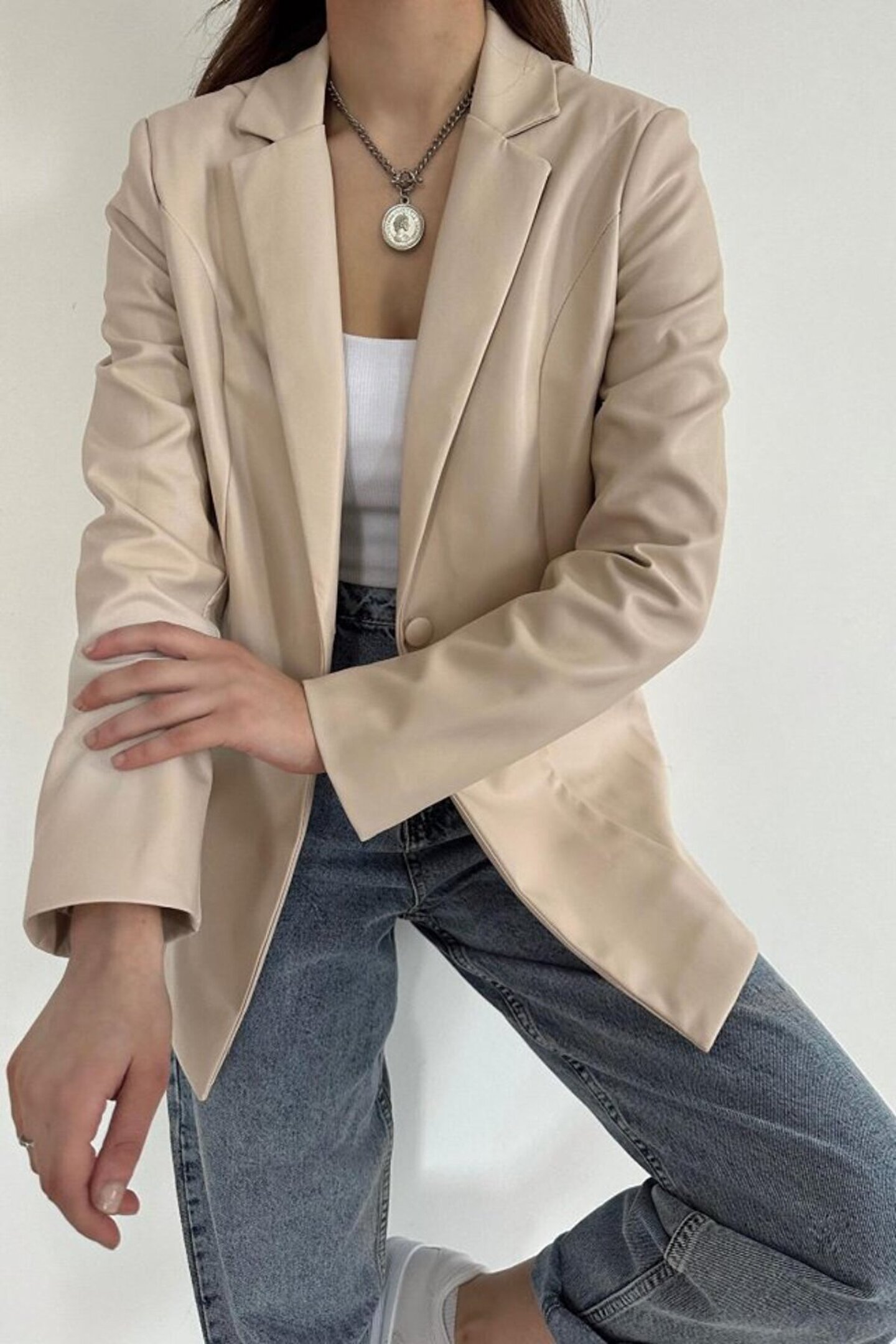 Asil Acar Home munn collection Bej Düğmeli Deri Ceket