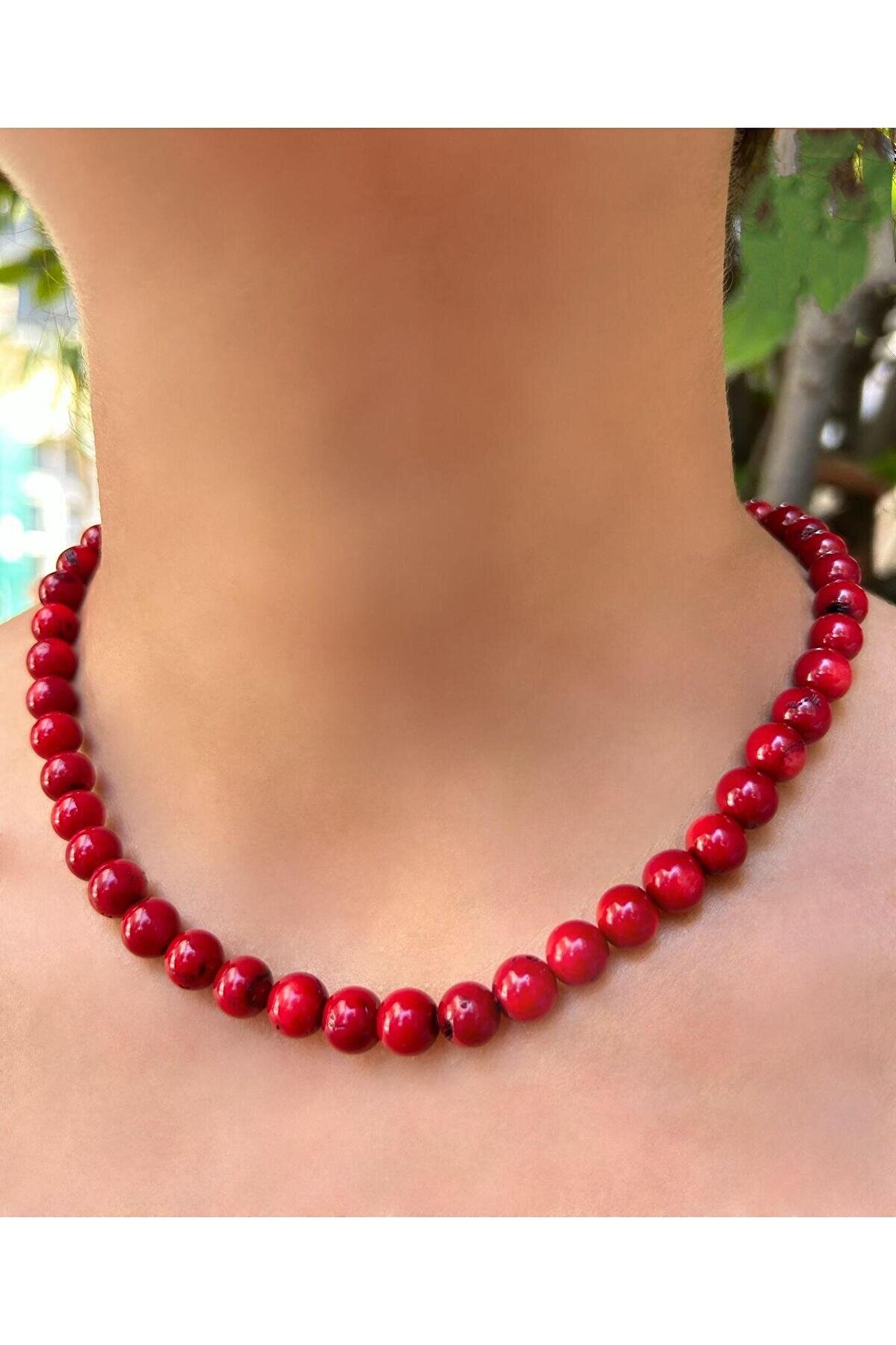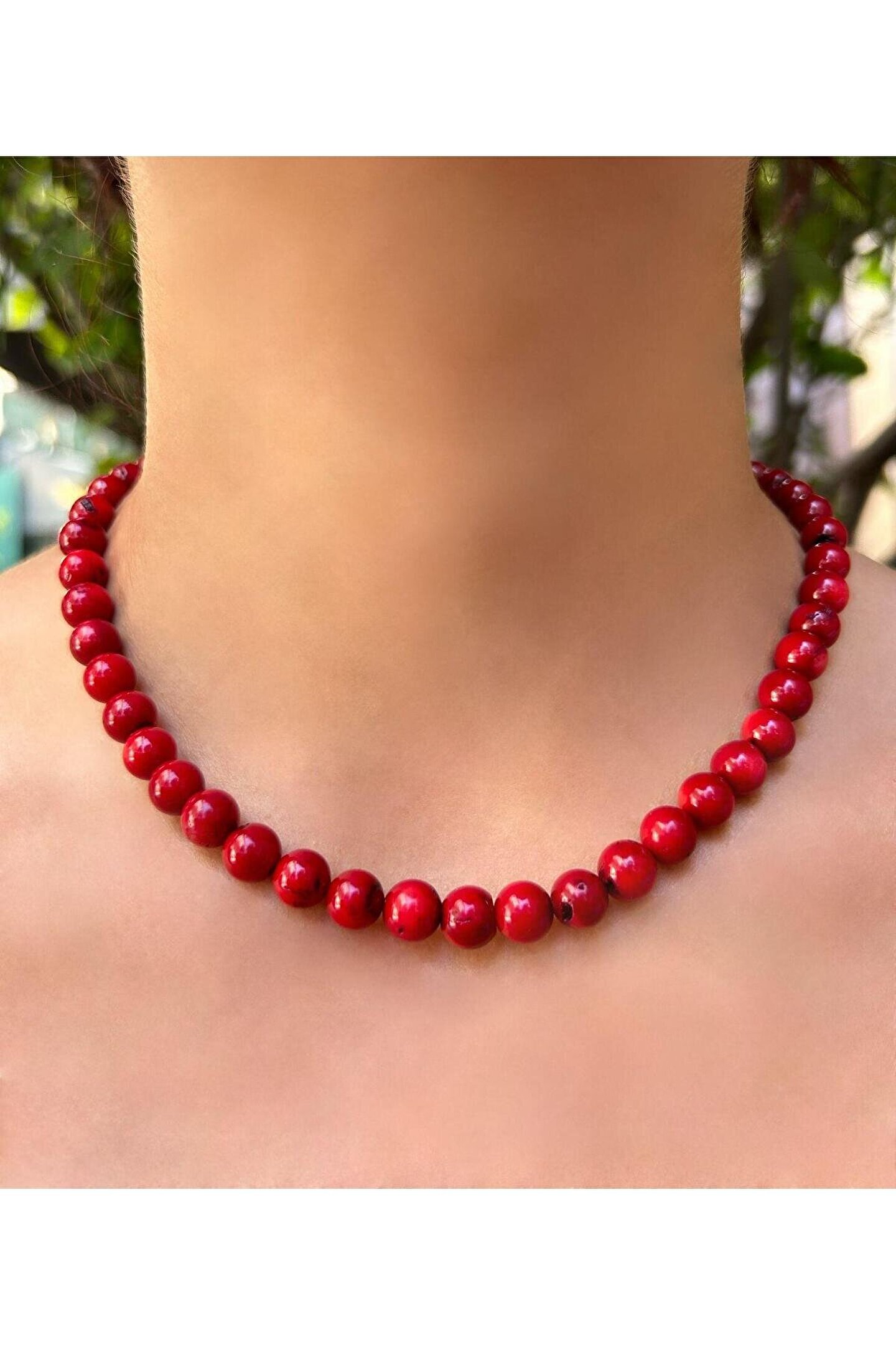 Doğal taş kullanımı sayesinde her kolye benzersiz ve otantik bir görünüm sunar; 8; 9 mm küre kesim mercan doğal taş, zarif ve modern bir tasarıma sahiptir; Boyalı mercan doğal taş, renklerin canlılığını uzun süre korur ve parlaklığını yitirmez; Bijuteri kolye, günlük kullanım için idealdir ve şıklığınızı tamamlayacak zarif bir aksesuardır;